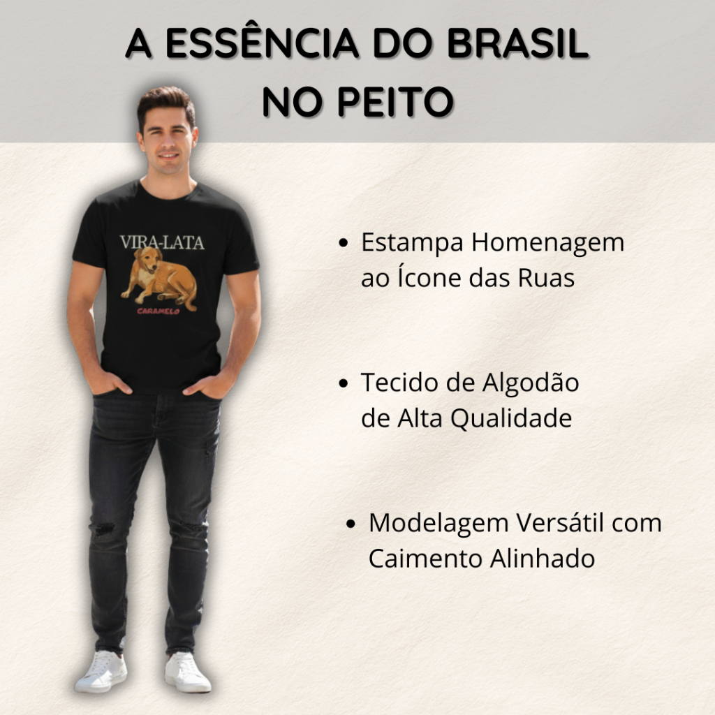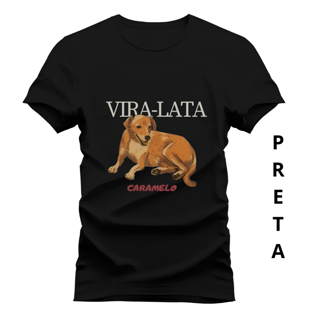 Camiseta Preta Vira Lata Caramelo Unissex 100% Algodao Penteado Camisa Brasil Dog Conforto Qualidade