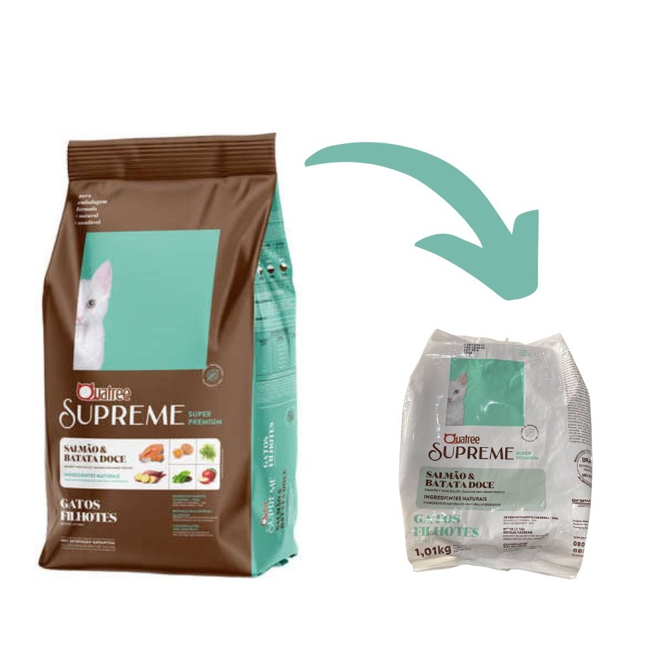 Kit Ração 1kg 1, 2, 3 Pacotes Quatree Supreme gatos FILHOTES Salmão e batata doce Alimento premium