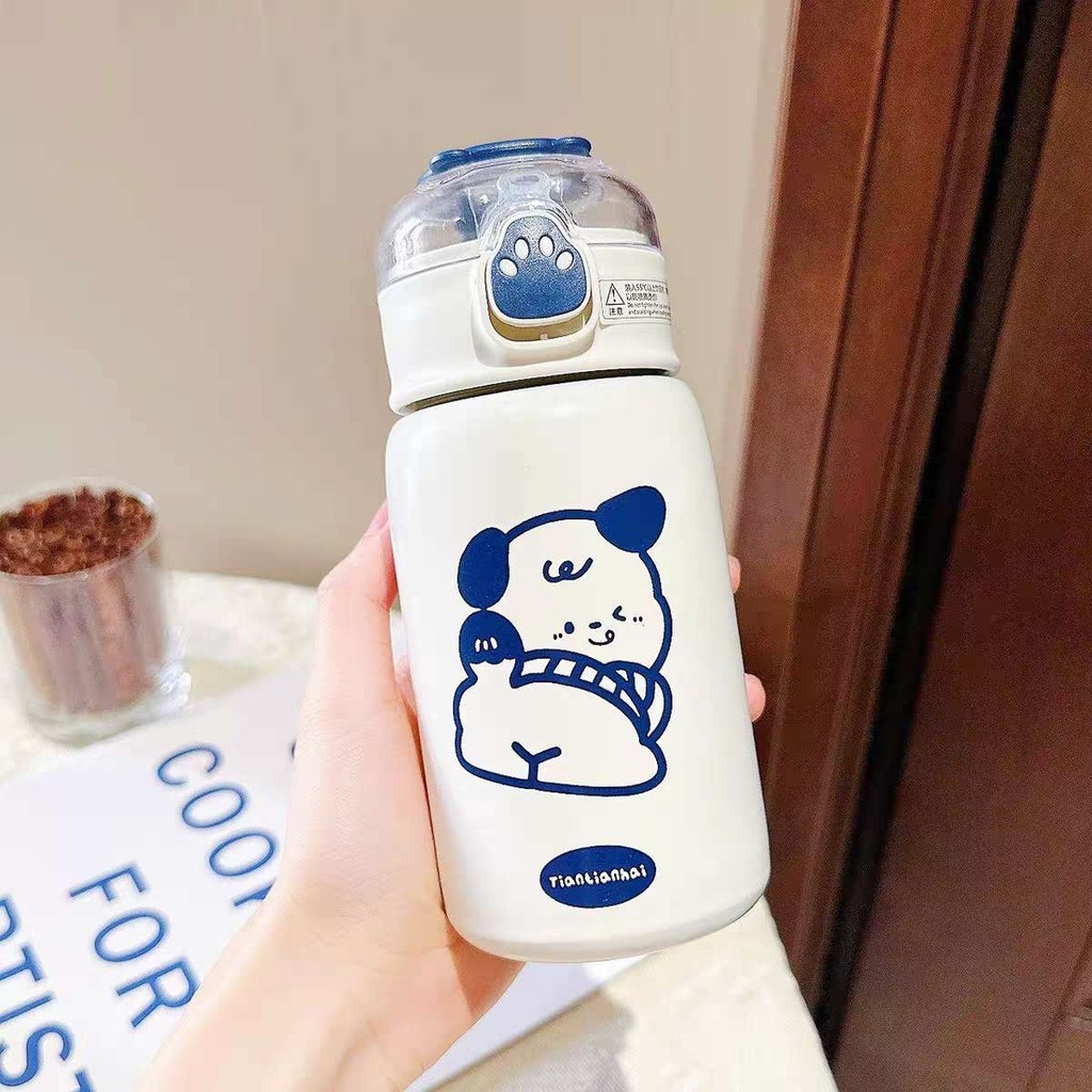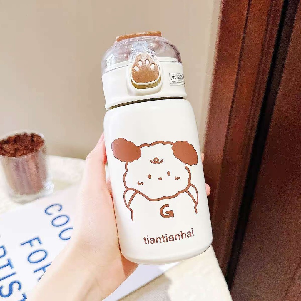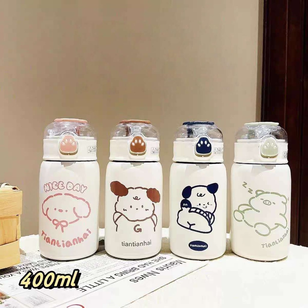 Garrafa Com Canudo Térmica Infantil Estampas Animais Aço Inox 400ml