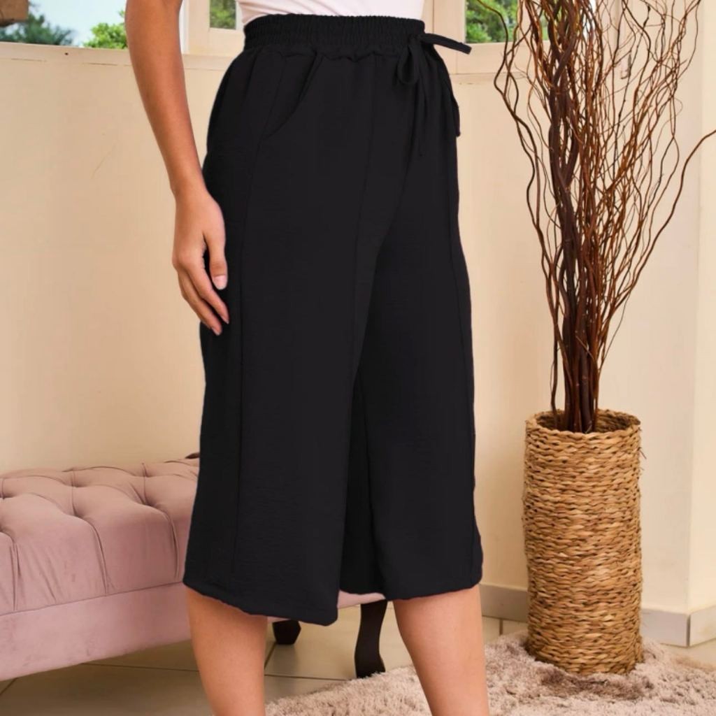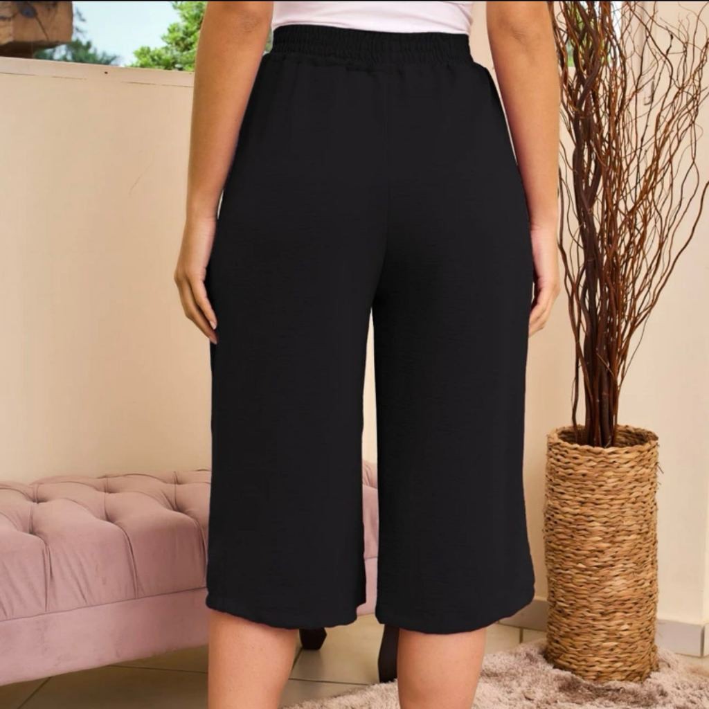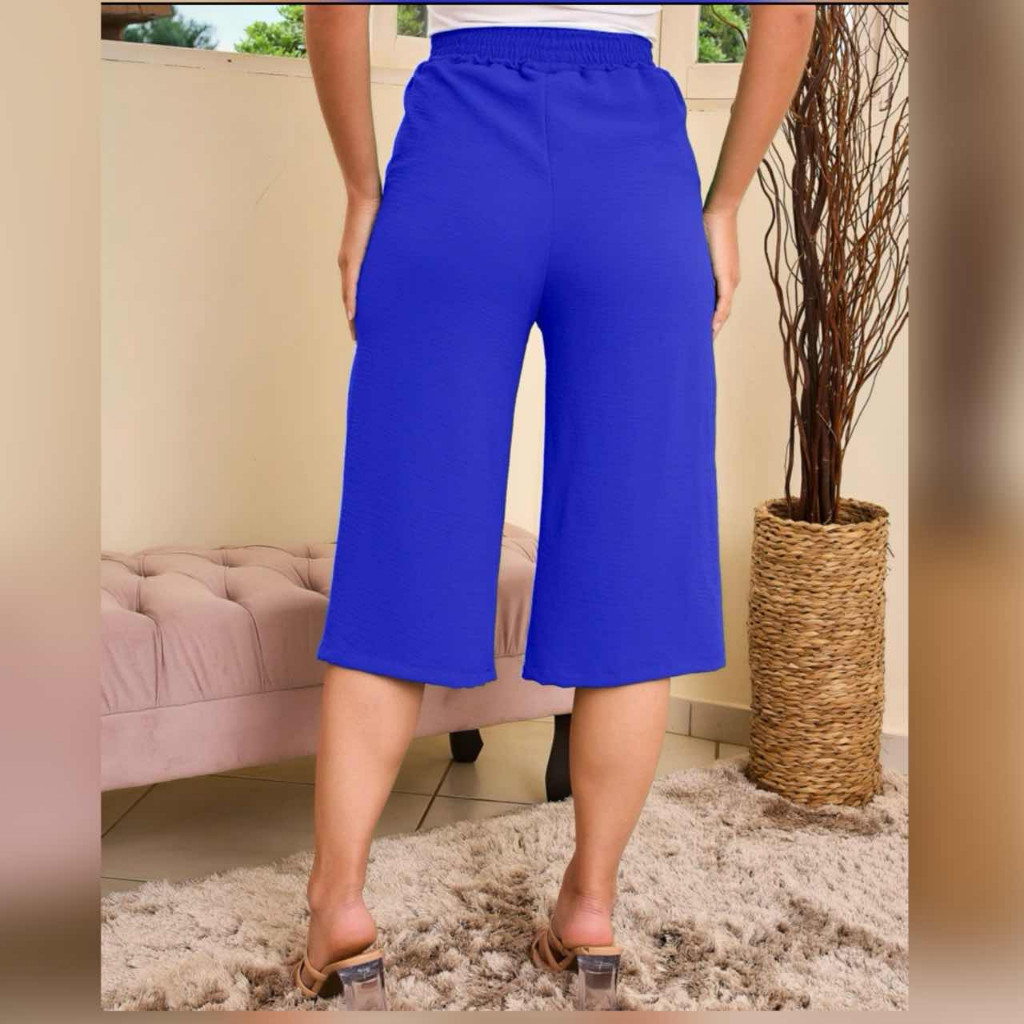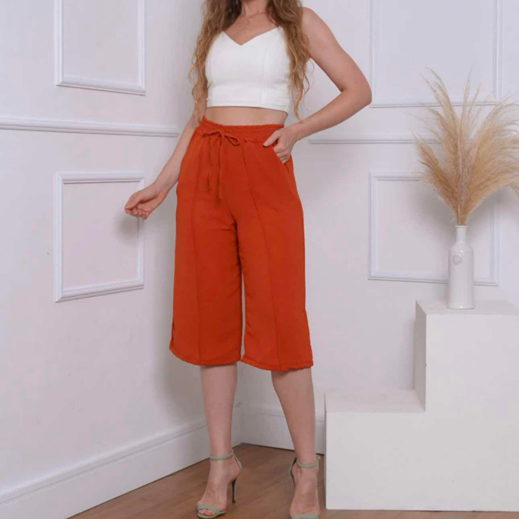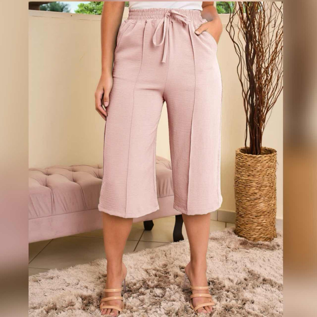 Calcas cortadas feminina de cor solida casual retas liso tecido duna ate a canela