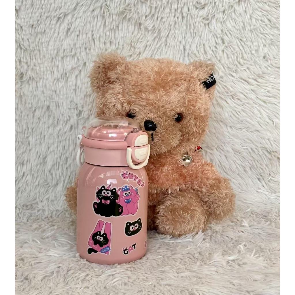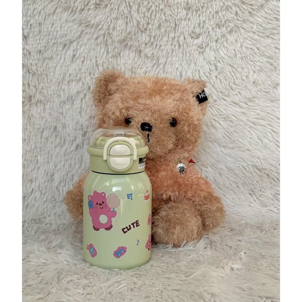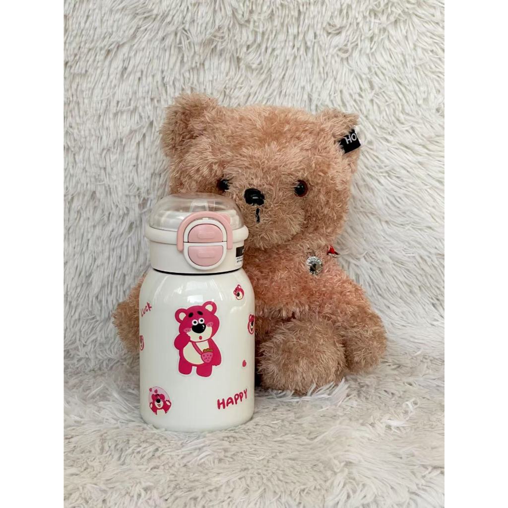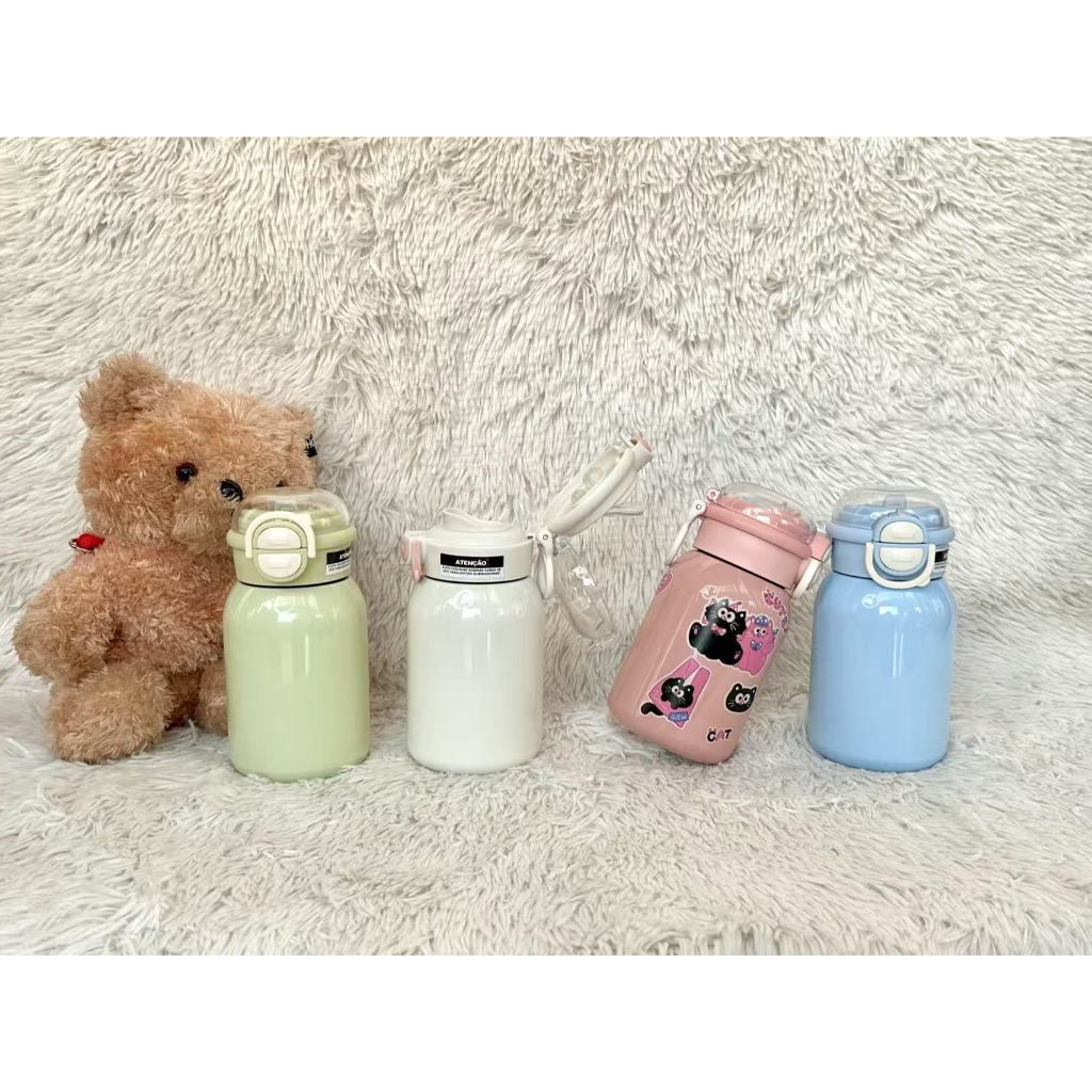 Garrafa Com Canudo Térmica Infantil Estampas Animais Aço Inox 500ml