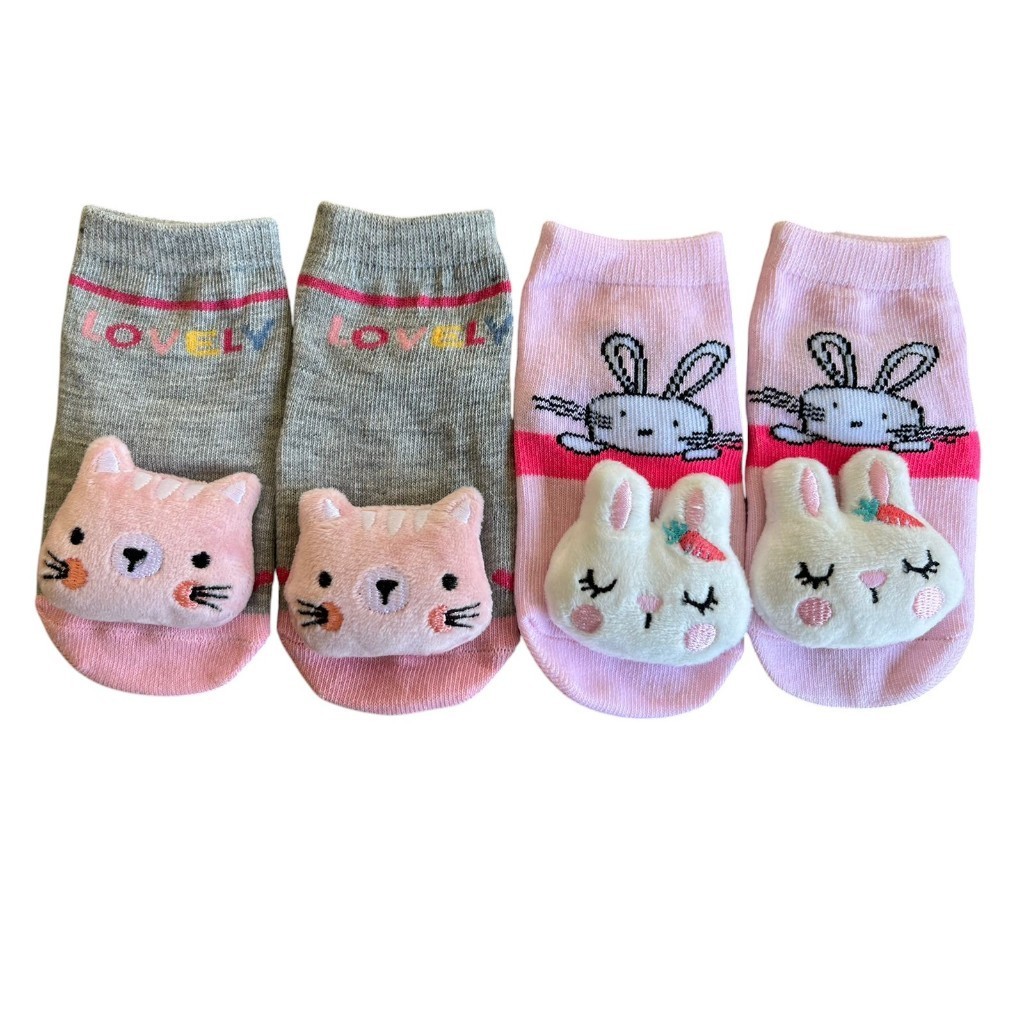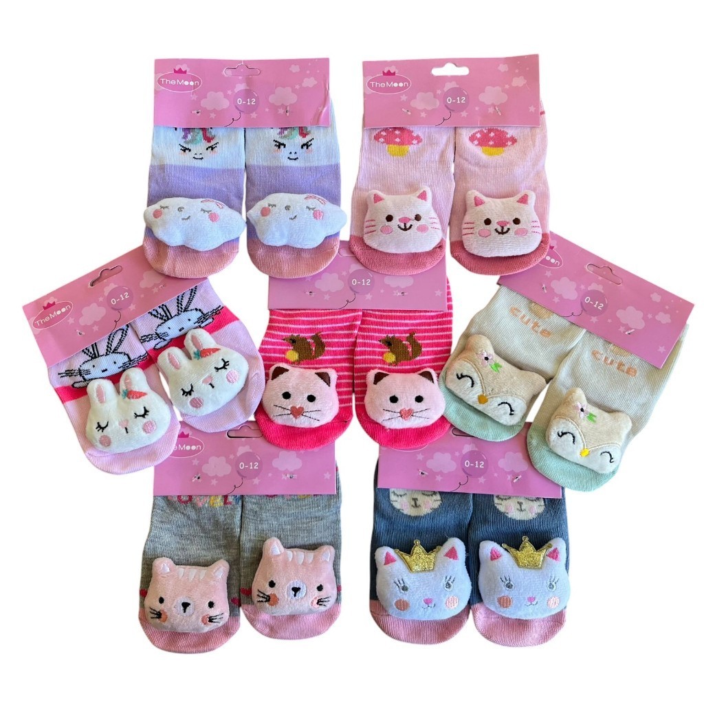 Kit 5 Pares de Meias 3D com Chocalho Bebê Menina Antiderrapante