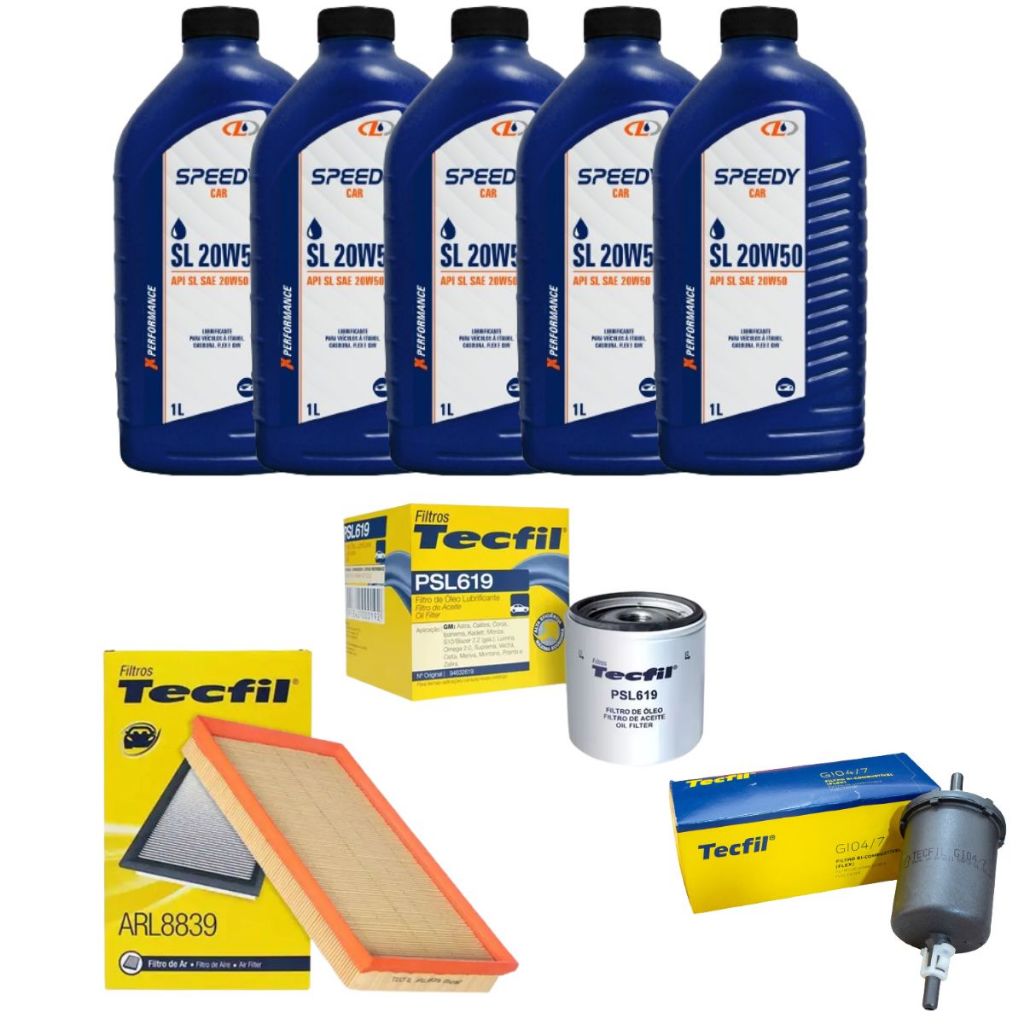 Kit Troca De Oleo Filtros Vectra 2.0 2.2 Gls 8V 16V 20w50 API SL Mineral revisão original Chevrolet