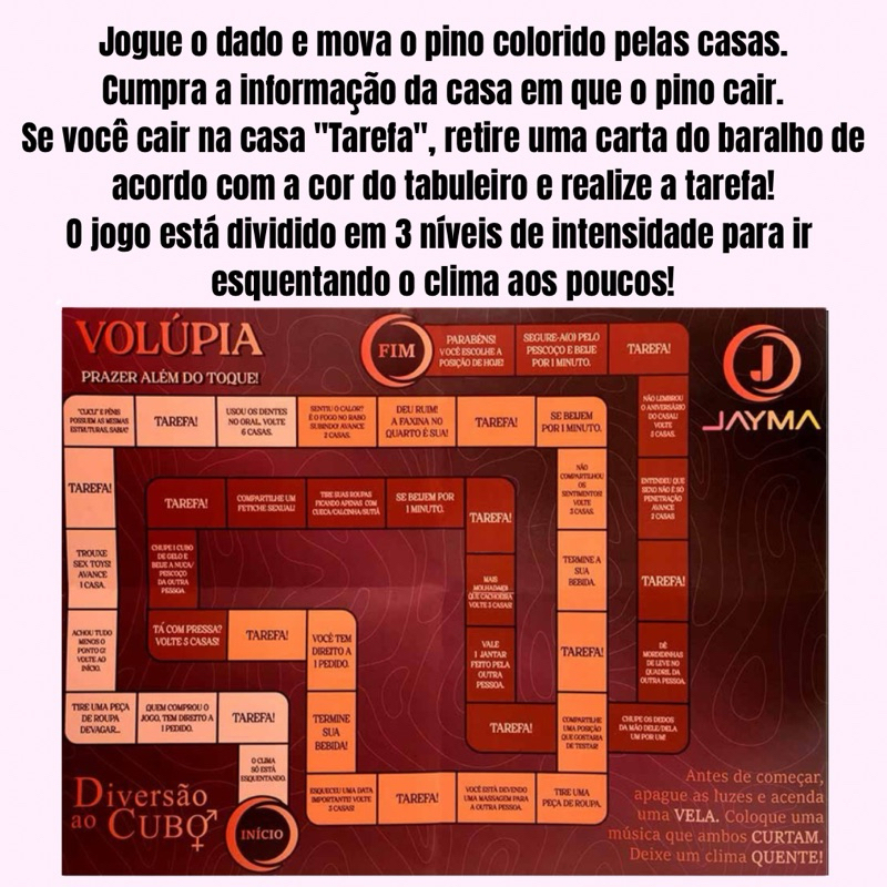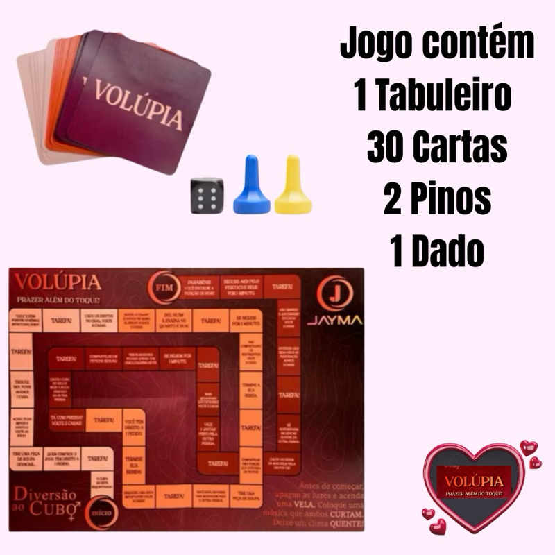 Jogo Volúpia de Tabuleiro com cartas dados jogo para casal diversão ao cubo