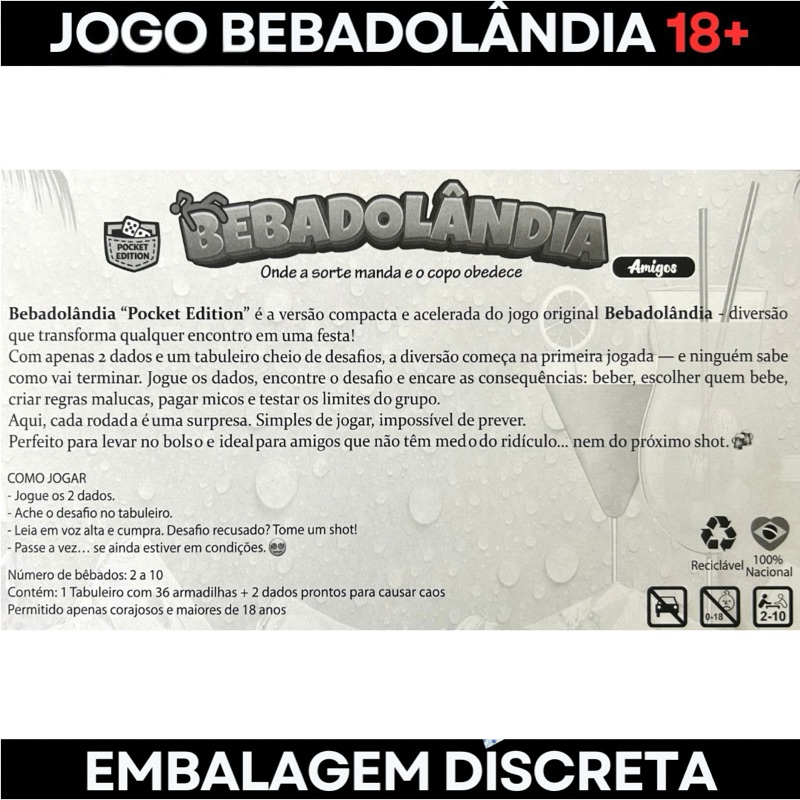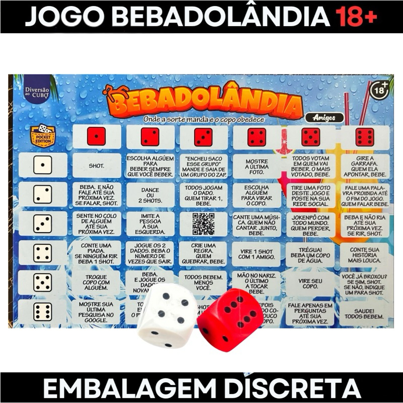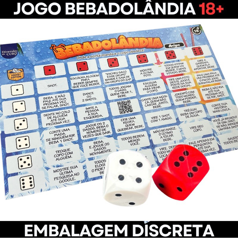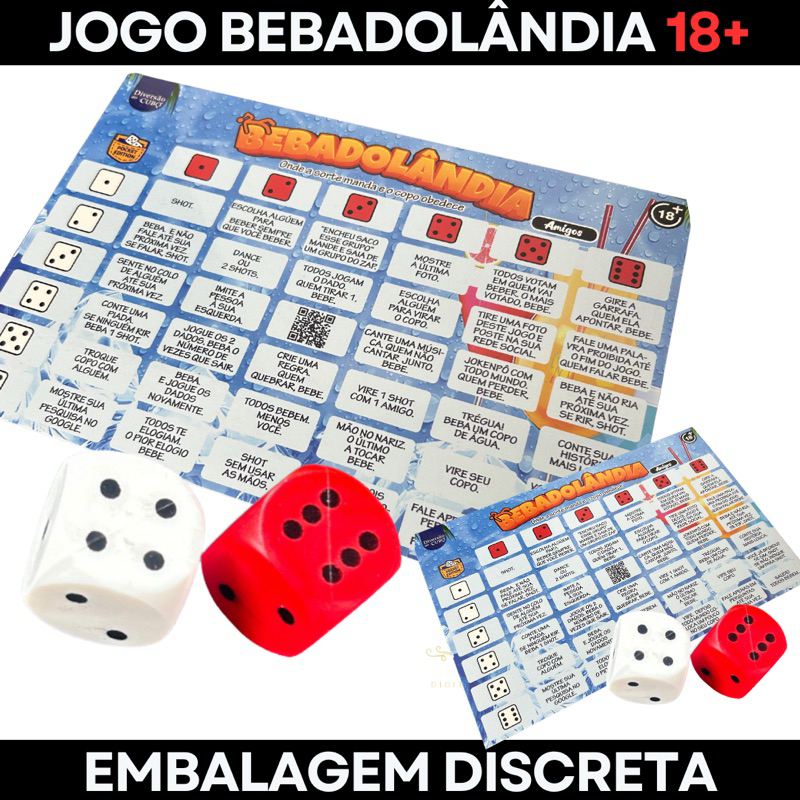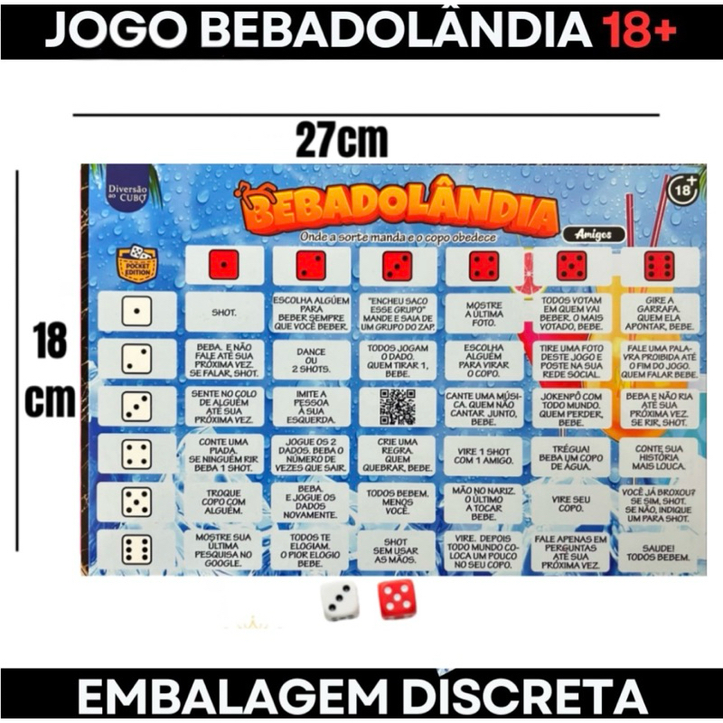 Jogo bebadolândia tabuleiro 2 dados amigos casais Festa diversão Esquenta Bebida beber shot