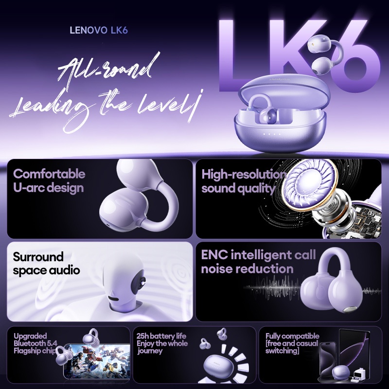 Lenovo LK6 Fone De Ouvido Bluetooth Limpar Alto E Baixo Uso Extralongo Para Físico