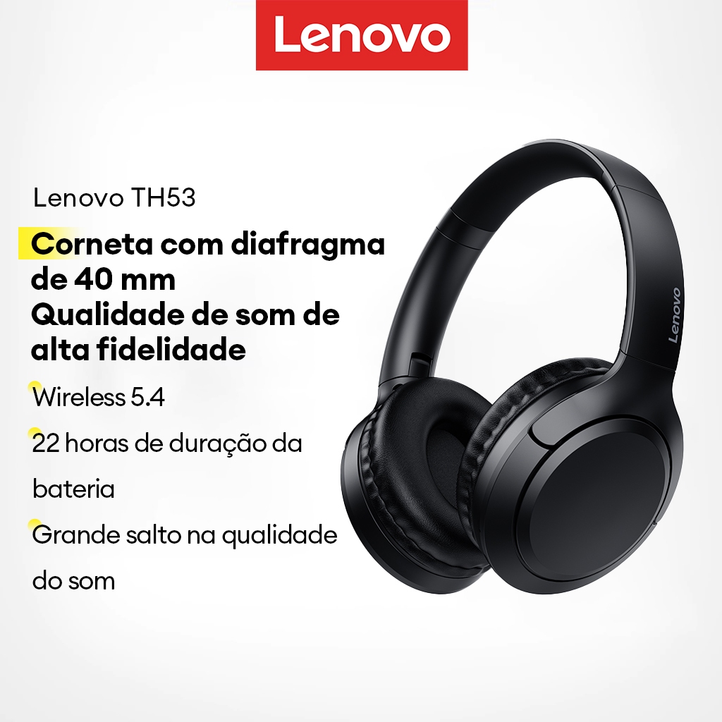 Lenovo TH53 Fones De Ouvido Bluetooth Para Jogos Áudio De Alta Resolução Baixa Latência Até 22 Horas De Duração Da Bater