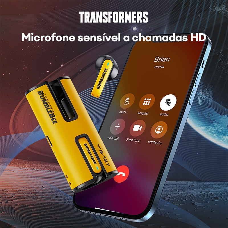 Transformers TF-T02 Fones de ouvido sem fio com qualidade de som HD e baixa latência