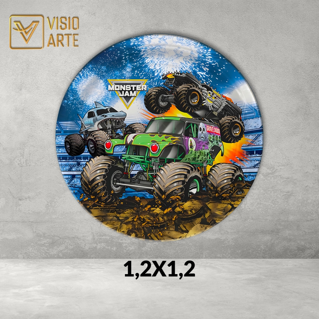 Painel Redondo Sublimado 3D Monster Truck 4 c/ elástico