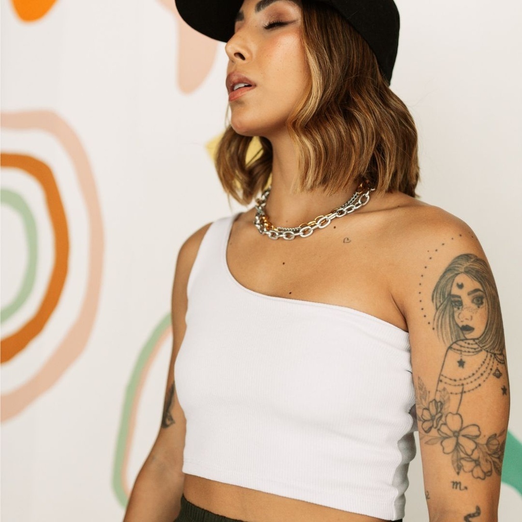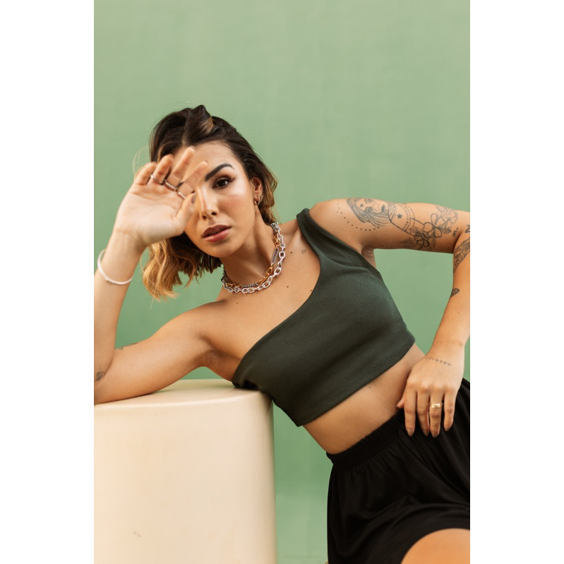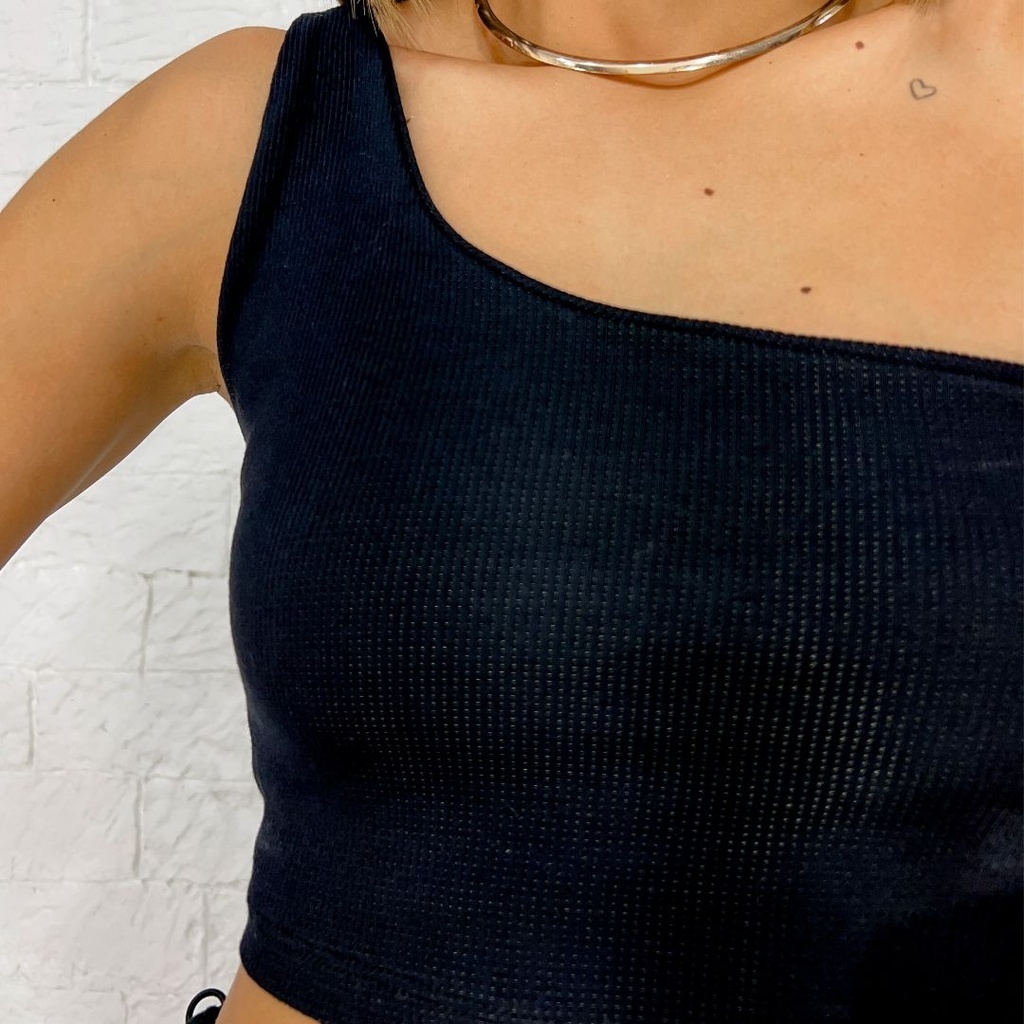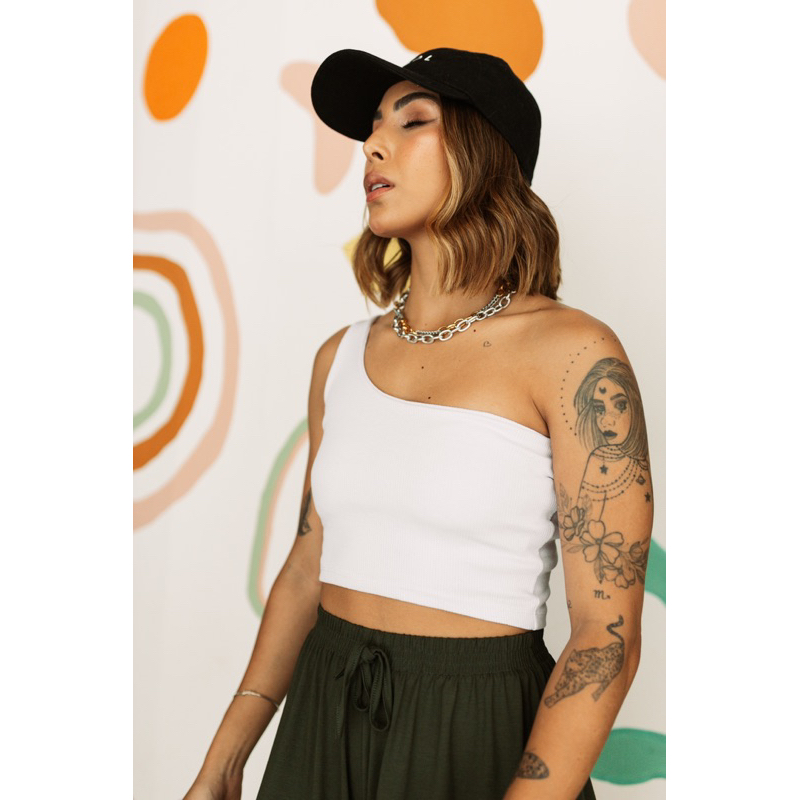 Cropped feminino Curto Mula Manca Um Ombro So Nula Manga Cropped Feminino Ribana Blusa básica Canelada Algodao
