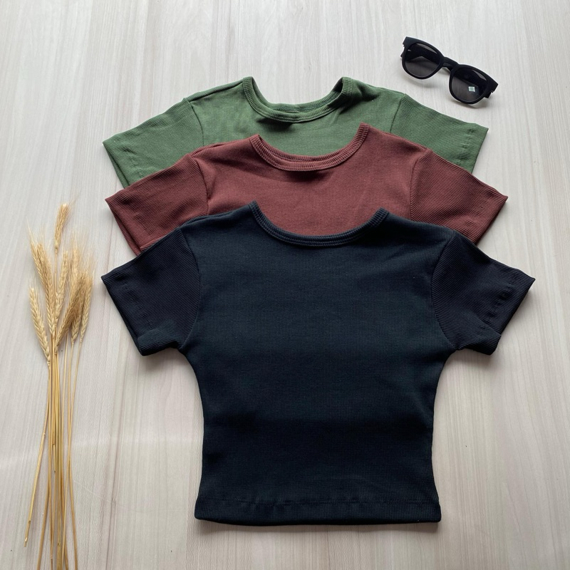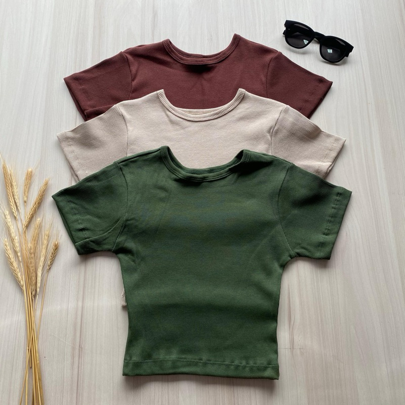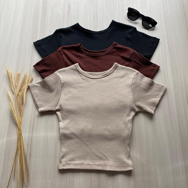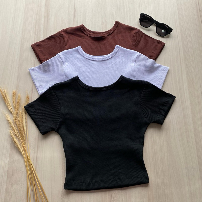 Kit 3 Cropped Manga Curta Canelado Manguinha Gola Redonda Ribana Canelada Algodão Blusinha Curta Camiseta Básica Cores
