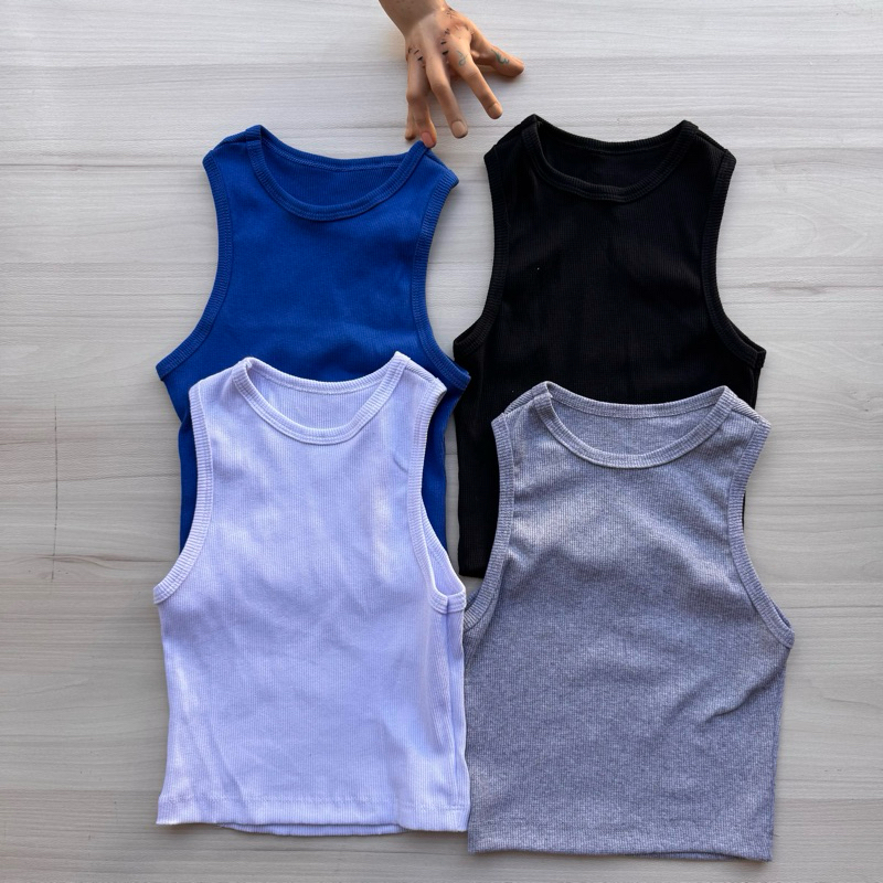 Kit 4 Cropped Feminino Regata Canelada Regata Feminina Camisetinha Basica Croped Zara Canelado Basico Ribana Canelada