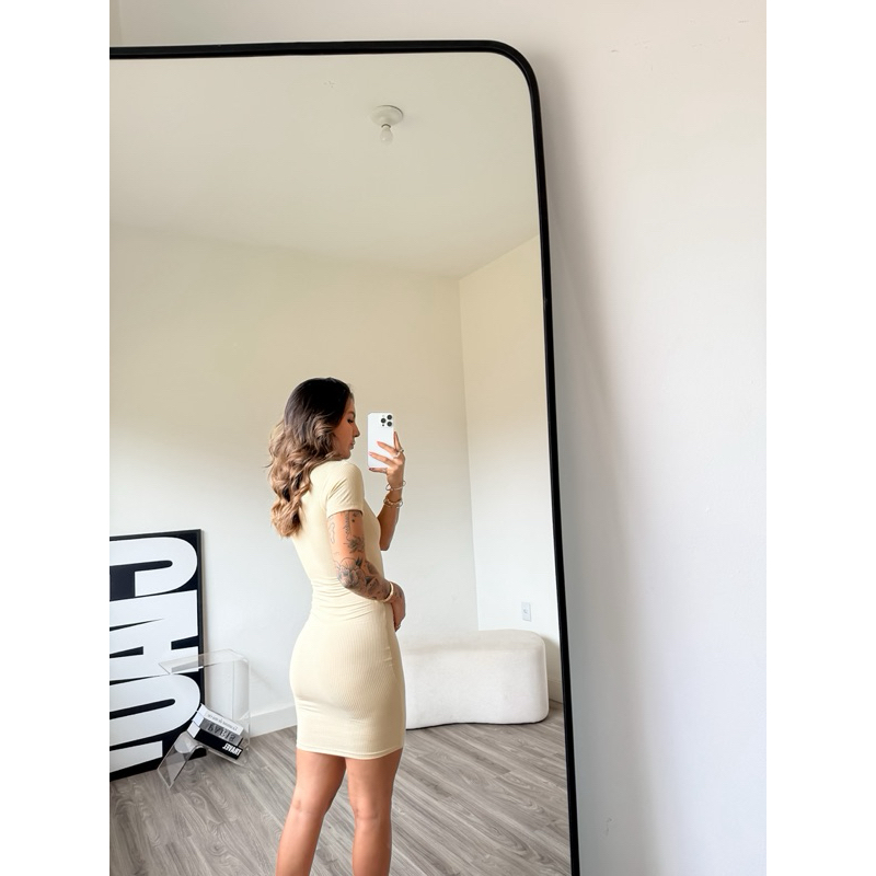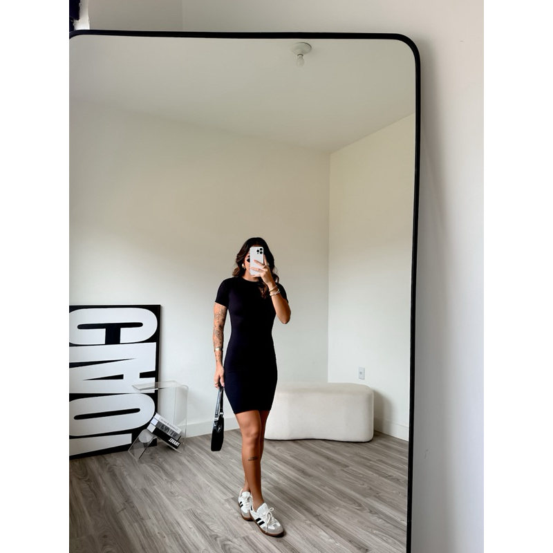Vestido Curto Malha Canelada Manga Curta Tubinho Feminino Verao Basico Blogueira Feminina Confortavel Zara Colado Justo