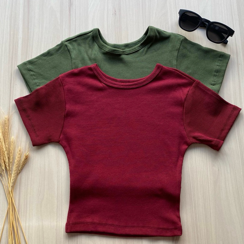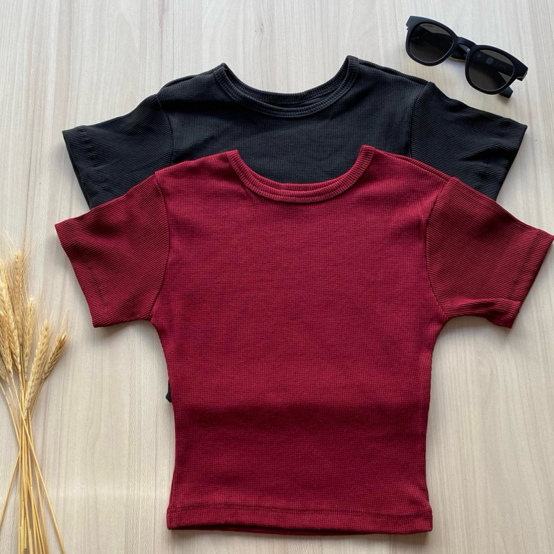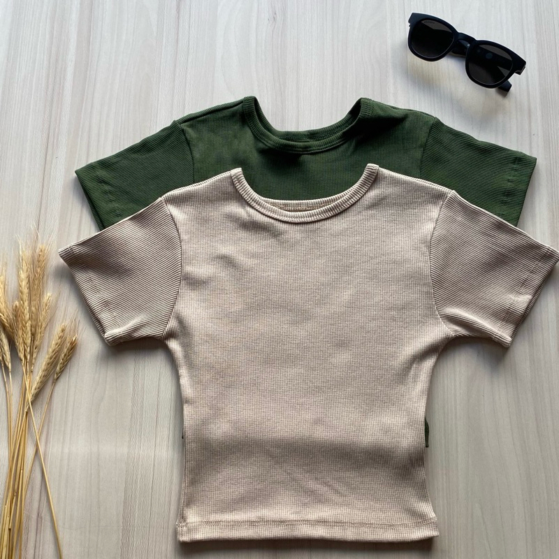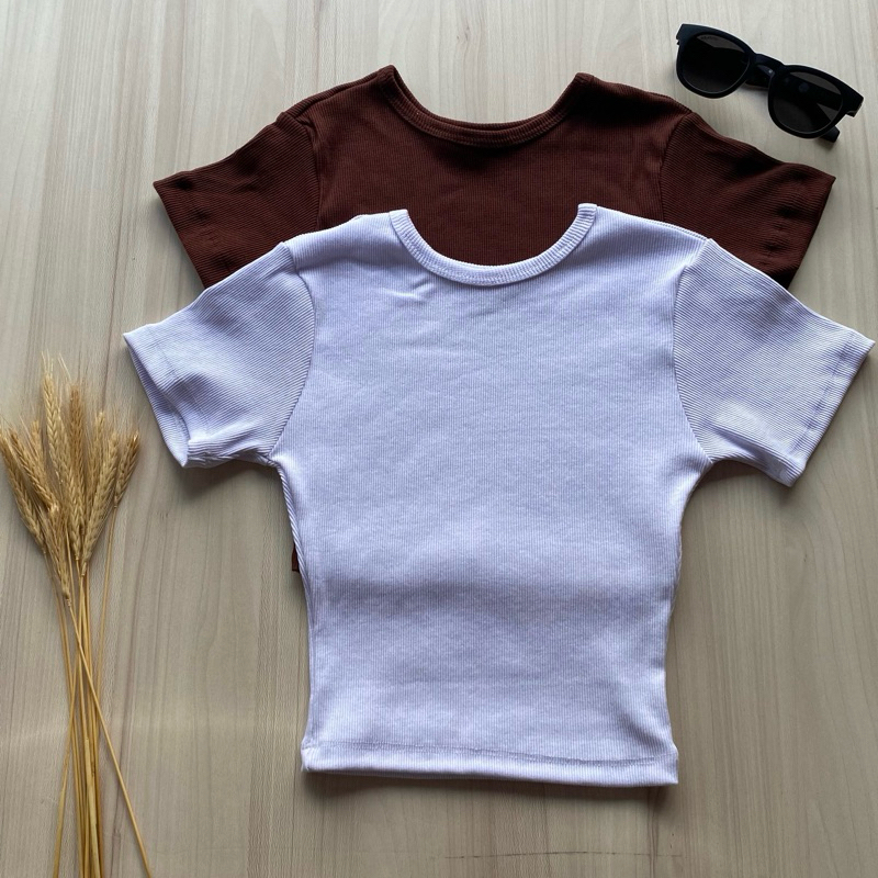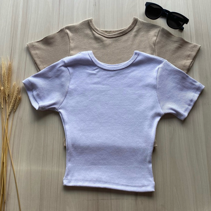 Kit 2 Cropped Manga Curta Canelado Manguinha Gola Redonda Ribana Canelada Algodão Blusinha Curta Camiseta Básica Cores