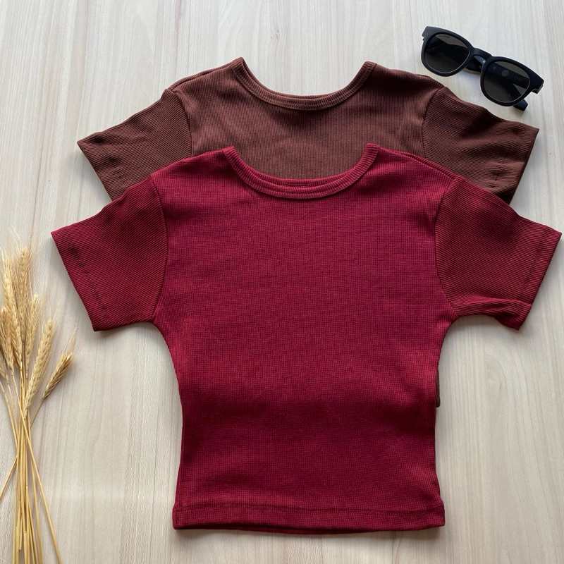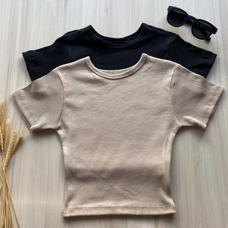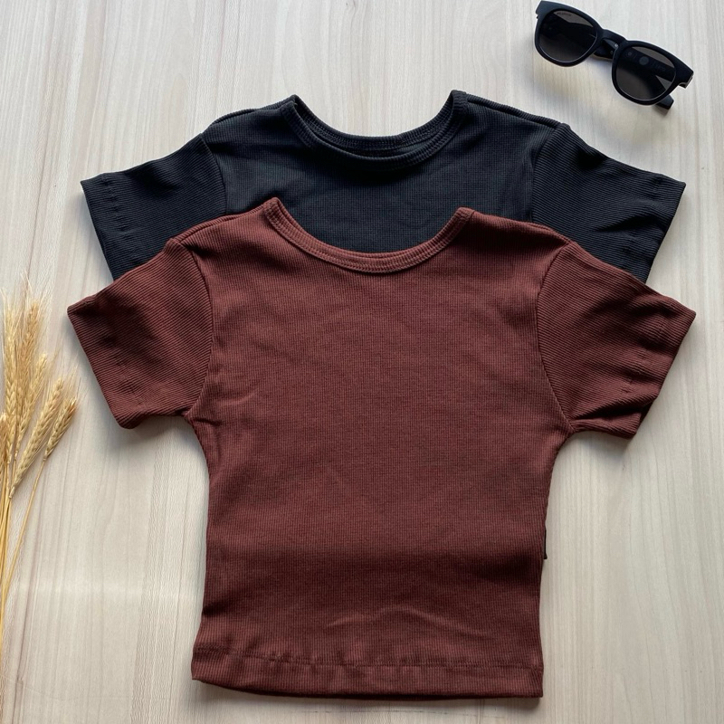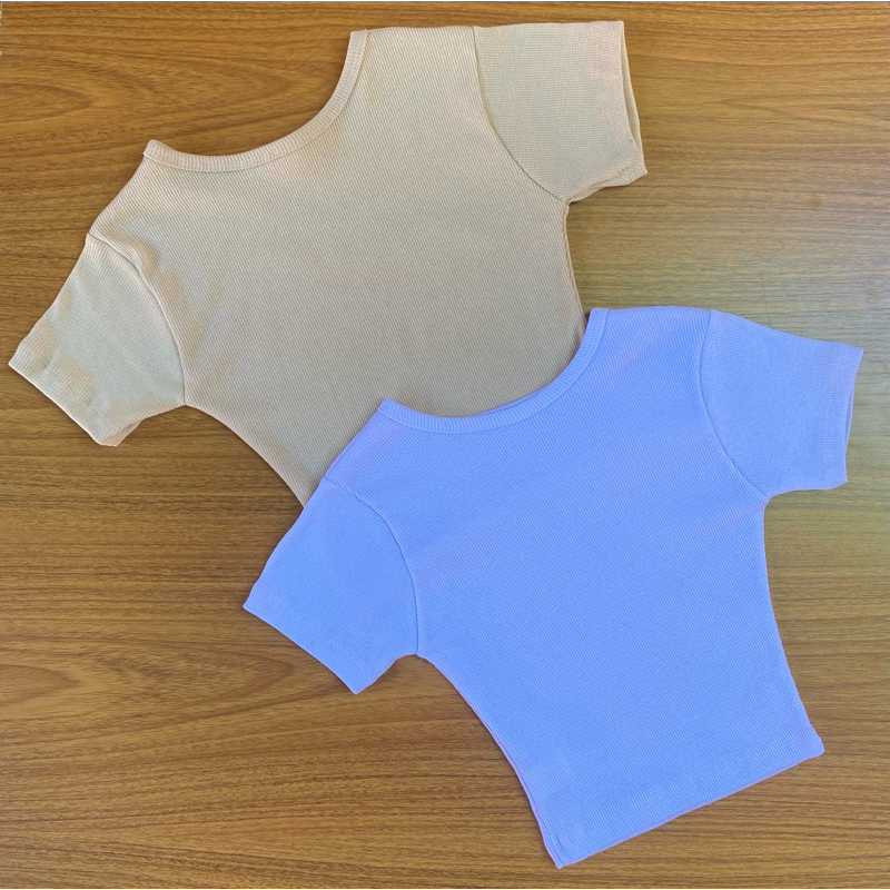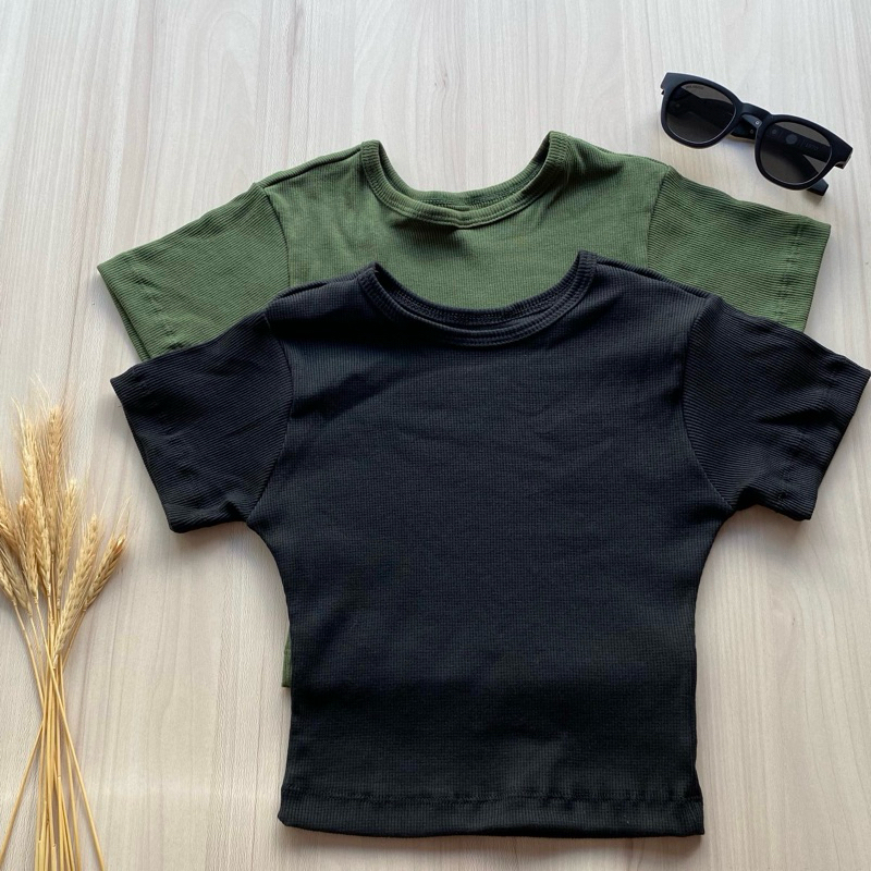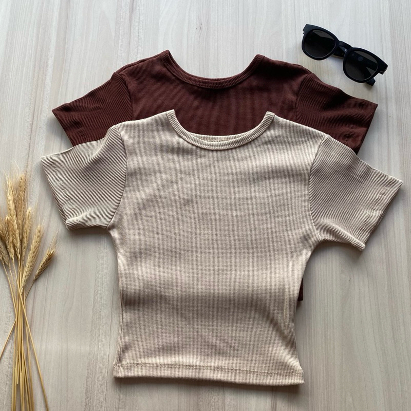 Kit 2 Cropped Manga Curta Canelado Manguinha Gola Redonda Ribana Canelada Algodão Blusinha Curta Camiseta Básica Cores