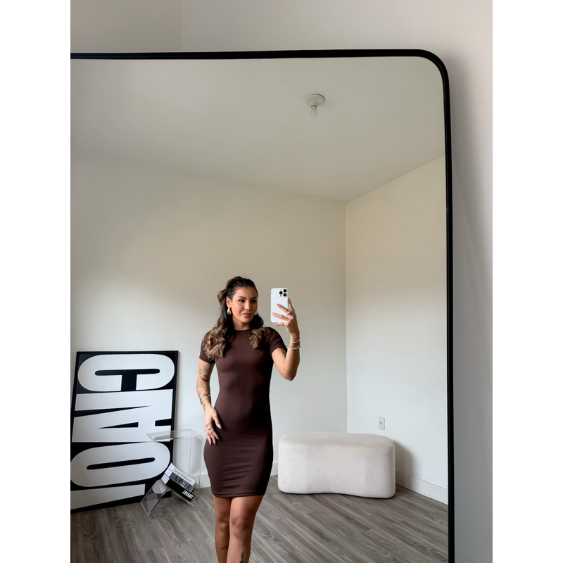 Kit 2 Vestido Curto Malha Canelada Manga Curta Tubinho Feminino Verao Gola Redonda Basico Blogueira Feminina Zara