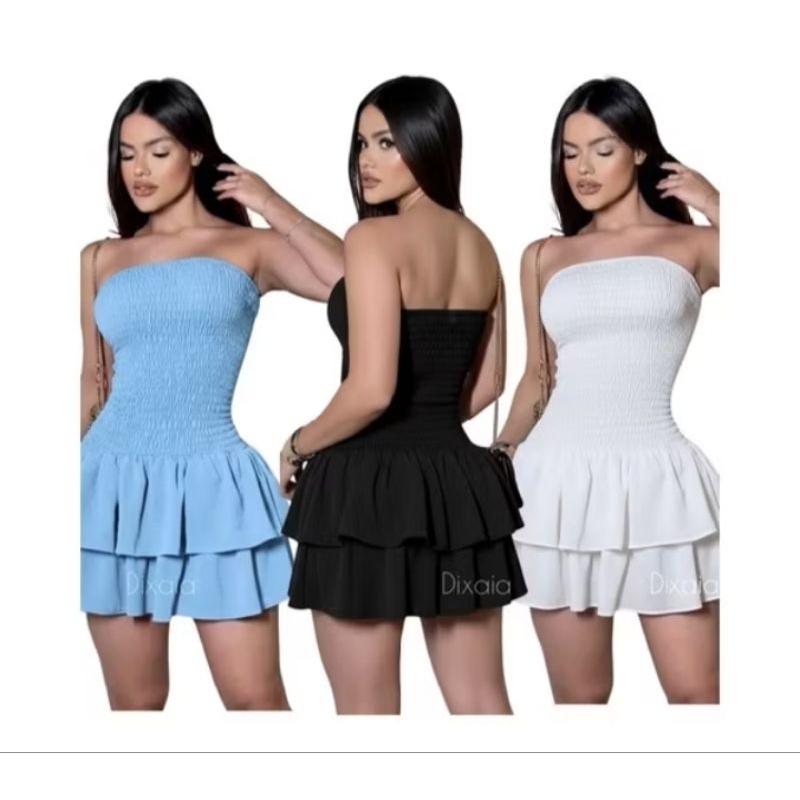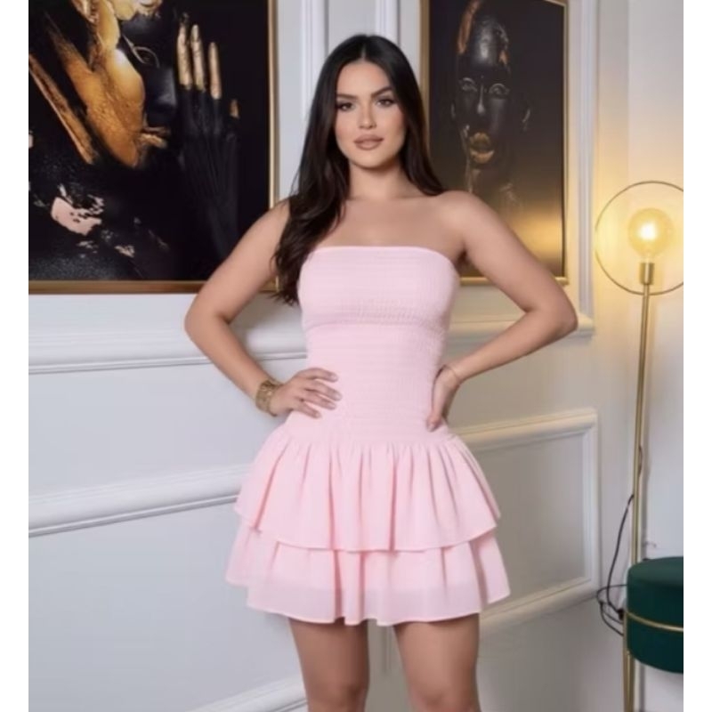Vestido Feminino Curto Elastex Tomara que Caia Babado Rodado Estilo Blogueira Festa Tendência Verão