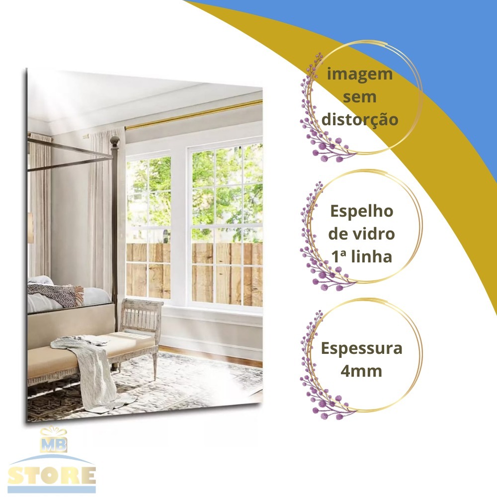 Espelho Decorativo Retangular 60X40cm Ladipado 4mm Sala Banheiro
