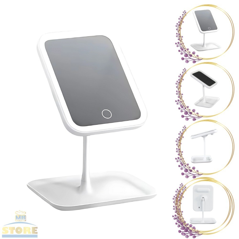Espelho Maquiagem LED Recarregável 3 Cores de Luzes Touch Ajustável Linear