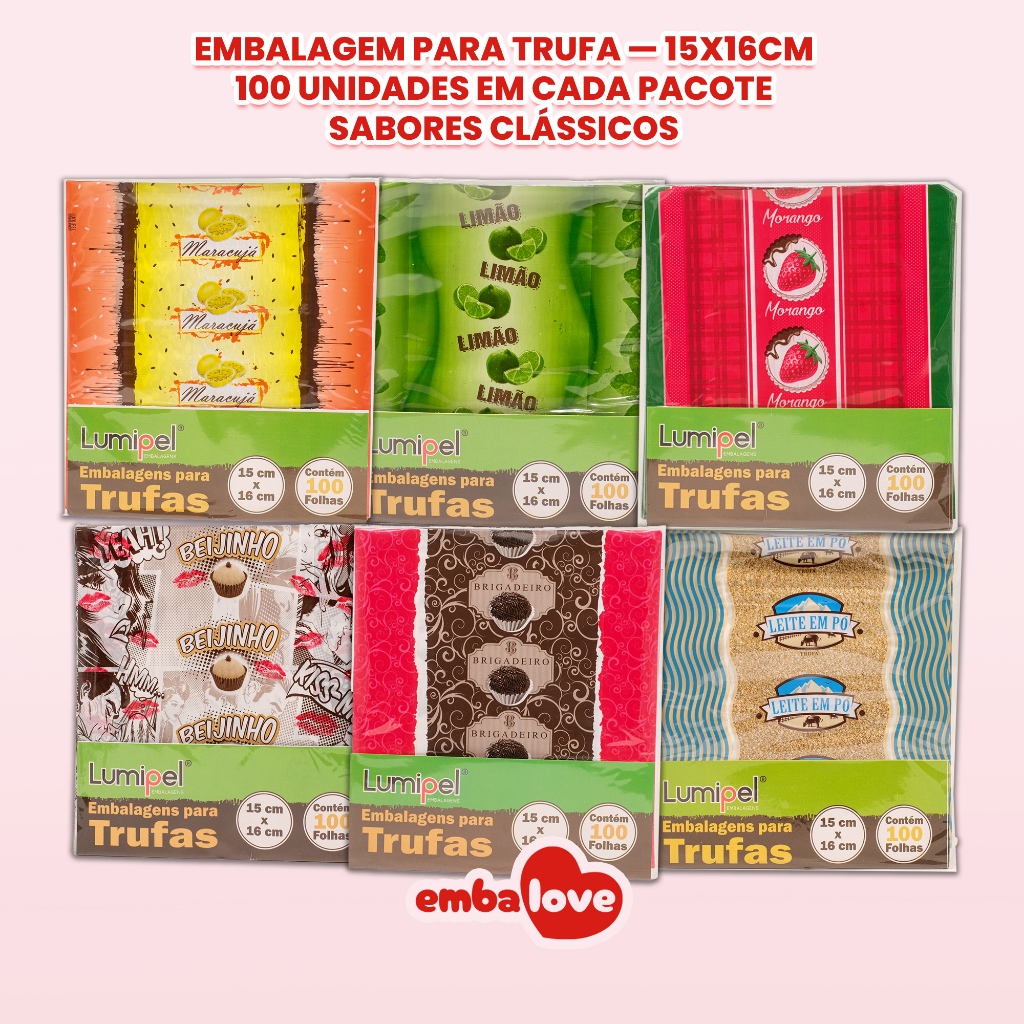 100 Embalagem para Trufa e Bombom 15x16cm Sabores