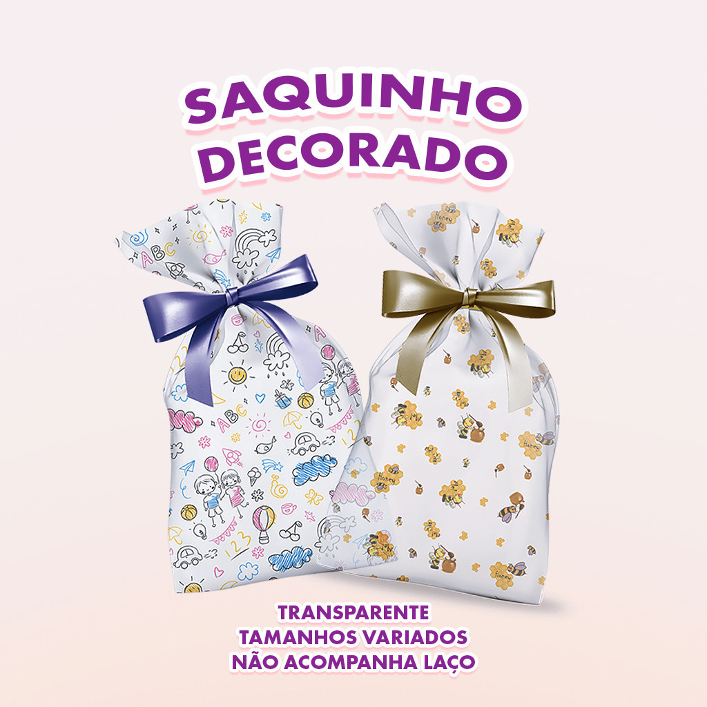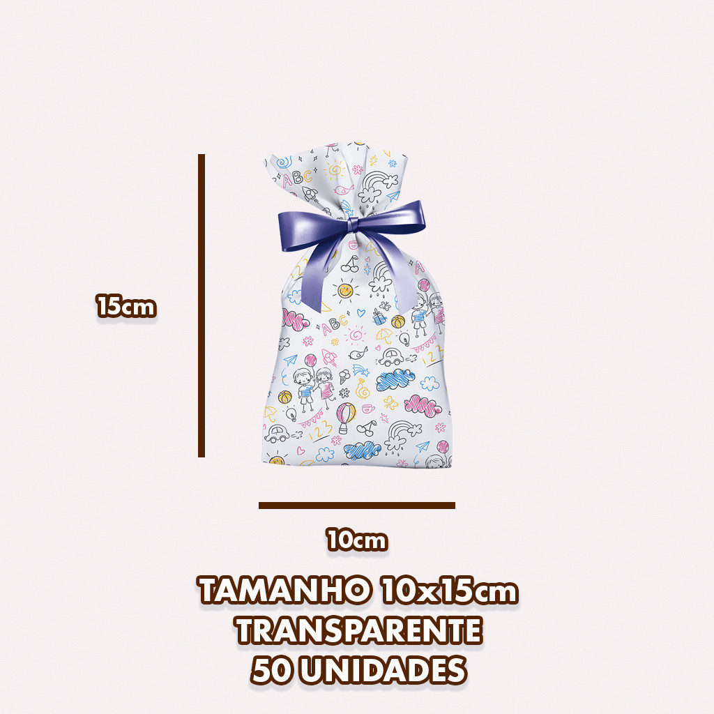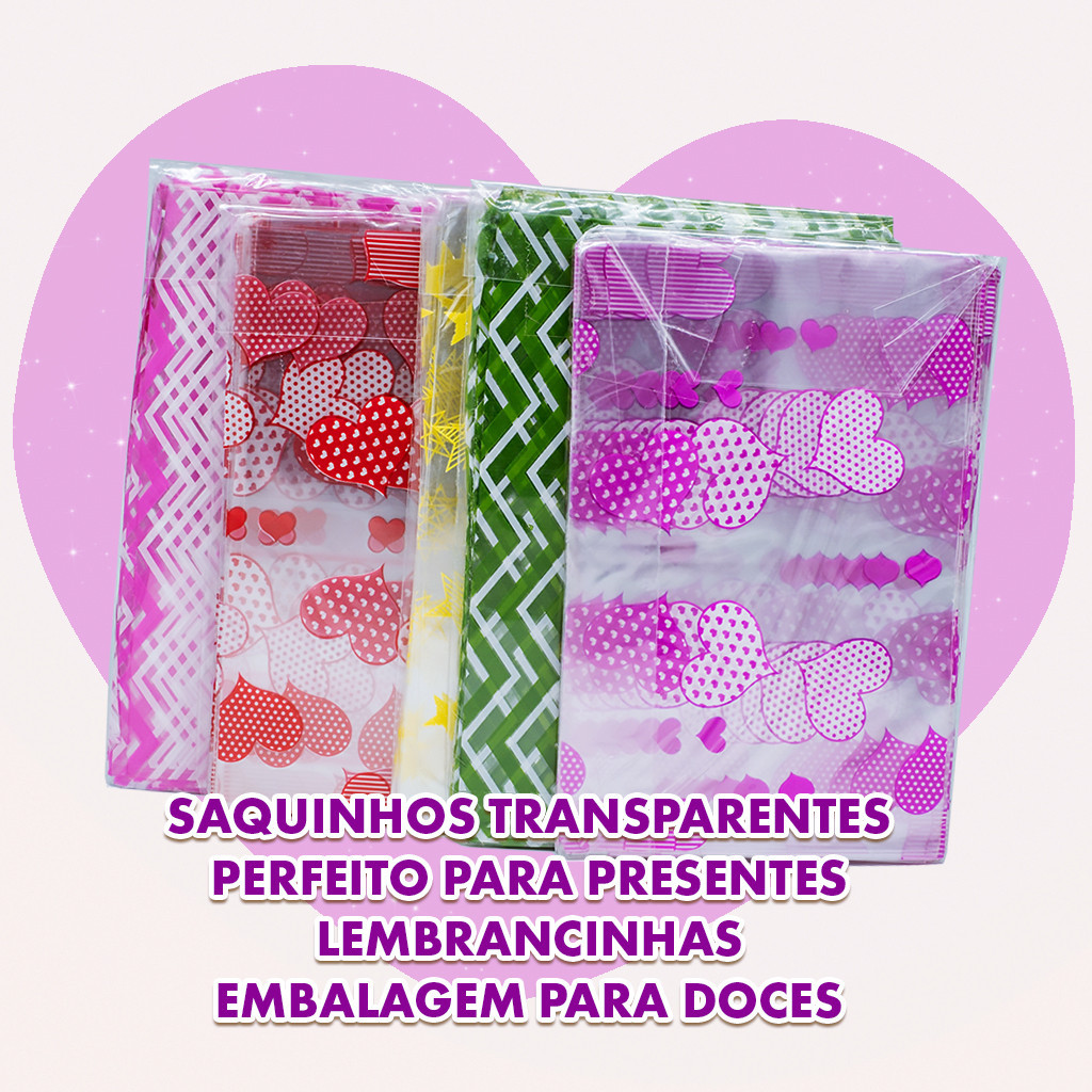 50 Sacos Decorados Transparentes 10x15 Ideais para Presentes e Doces