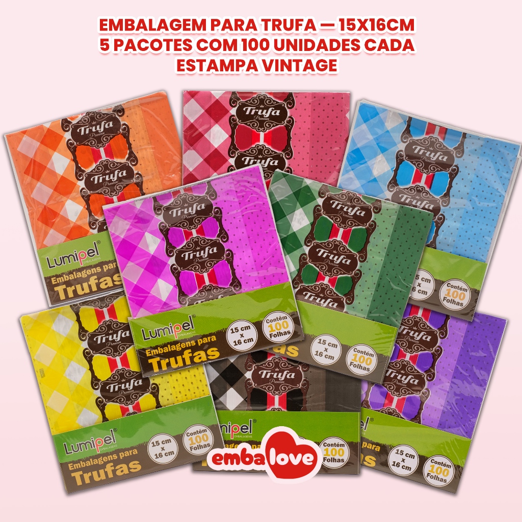 500 Embalagem para Trufa e Bombom 15x16cm Decorados