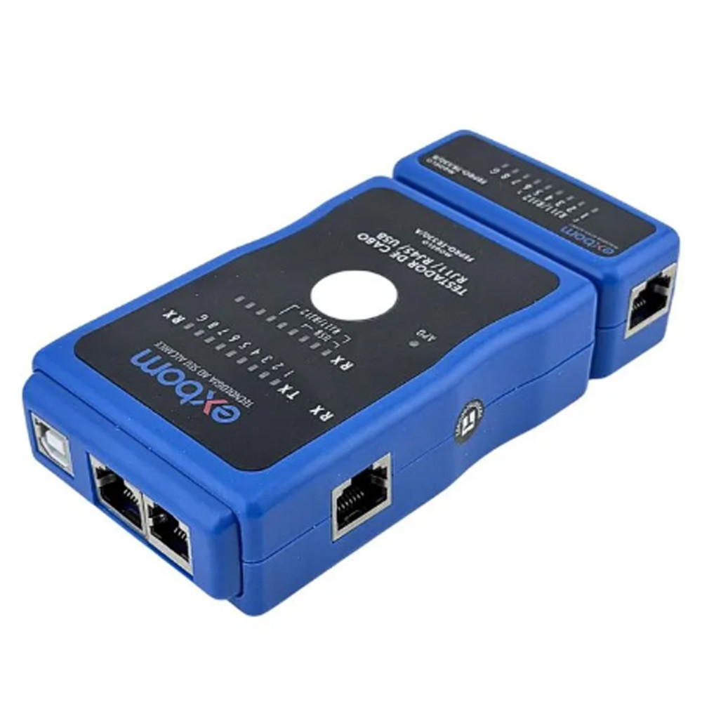 Testador De Cabo de Rede RJ45/11/12 E Cabo de Impressora Exbom FEPRO-TC330