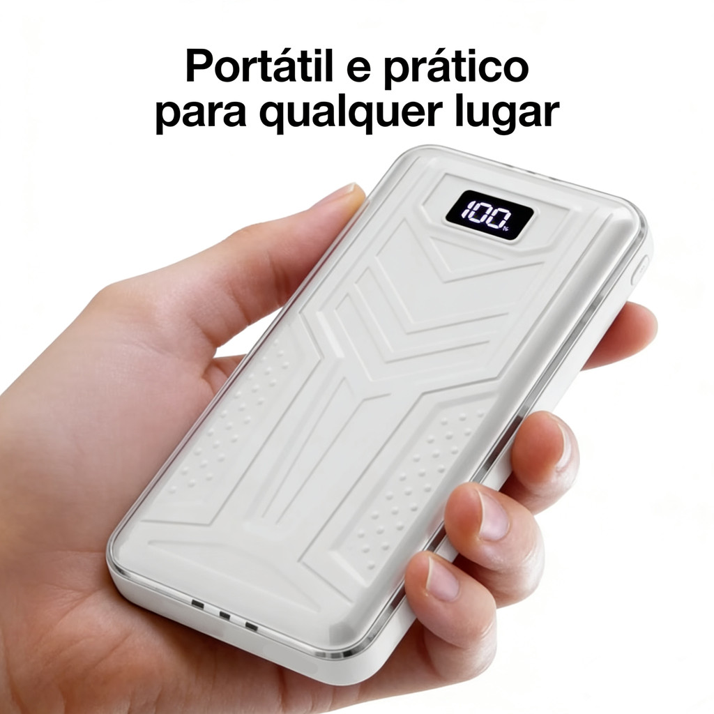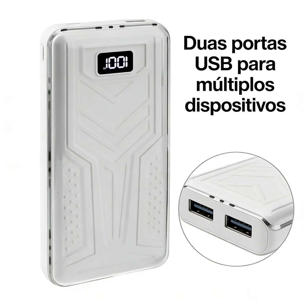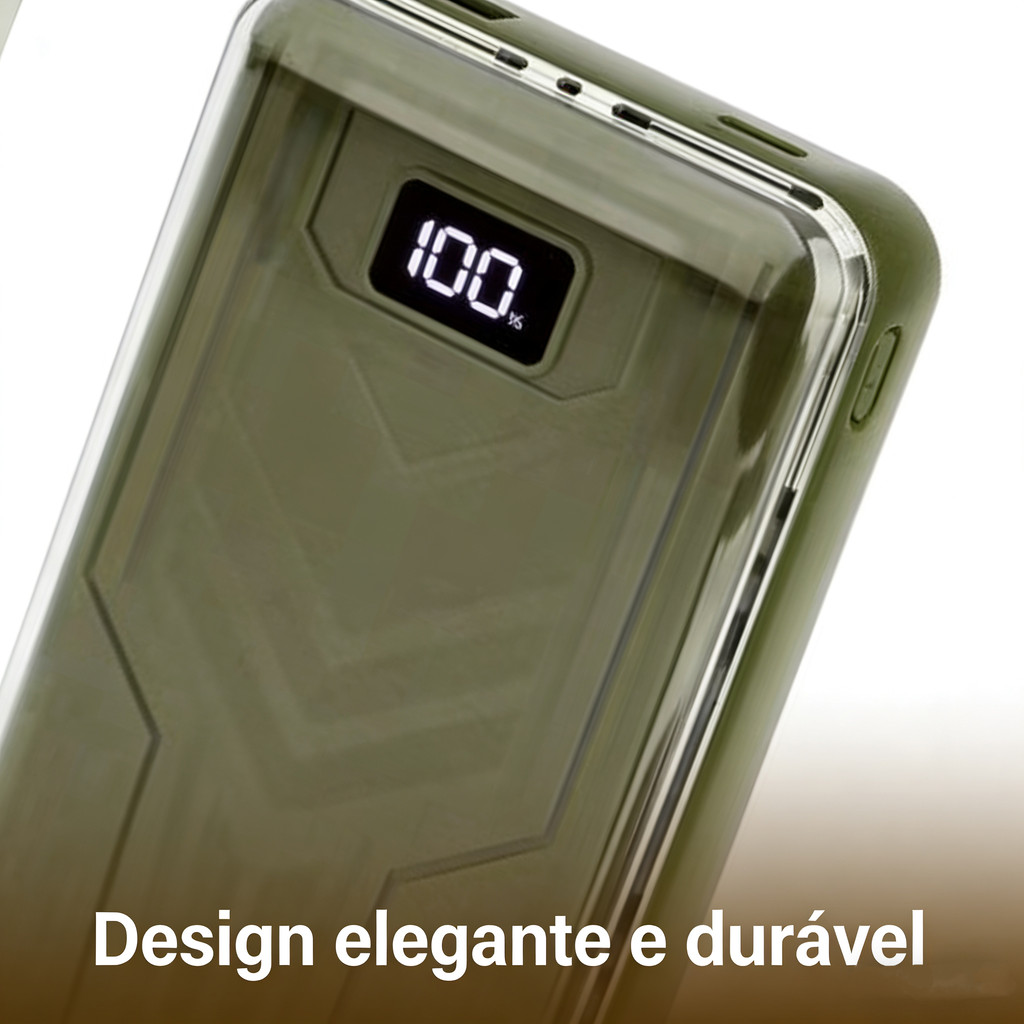 Power Bank 20000mAh 4 em 1 com Cabo Integrado Lightning Tipo C Micro USB Carga Rápida 3.1A