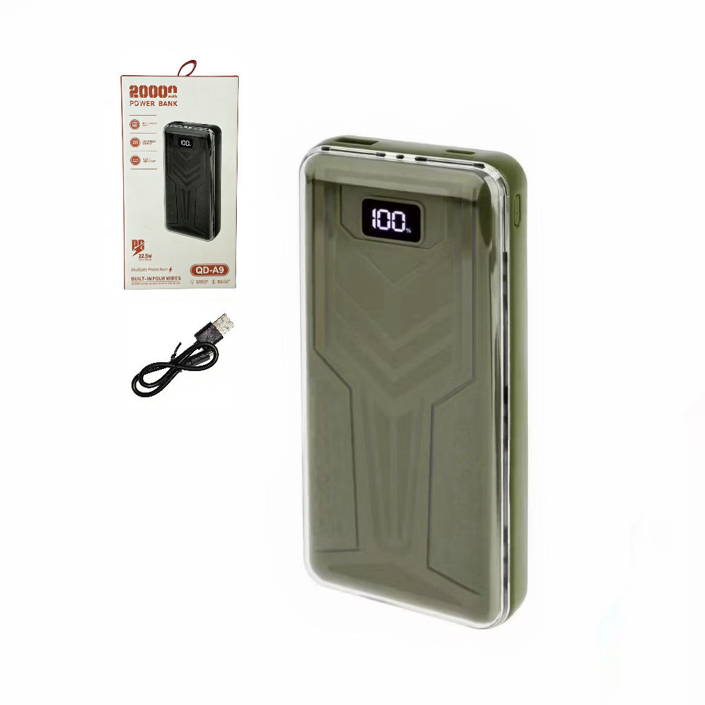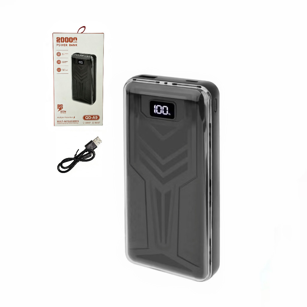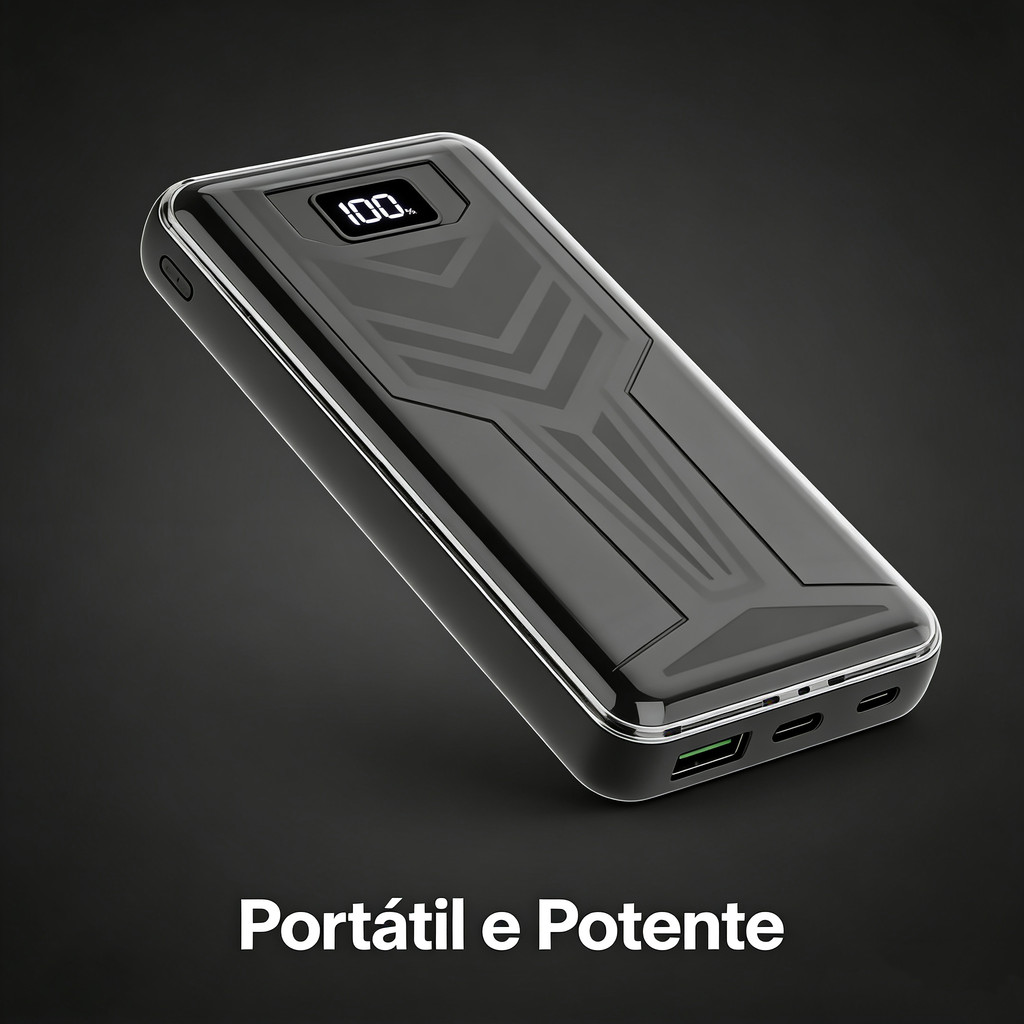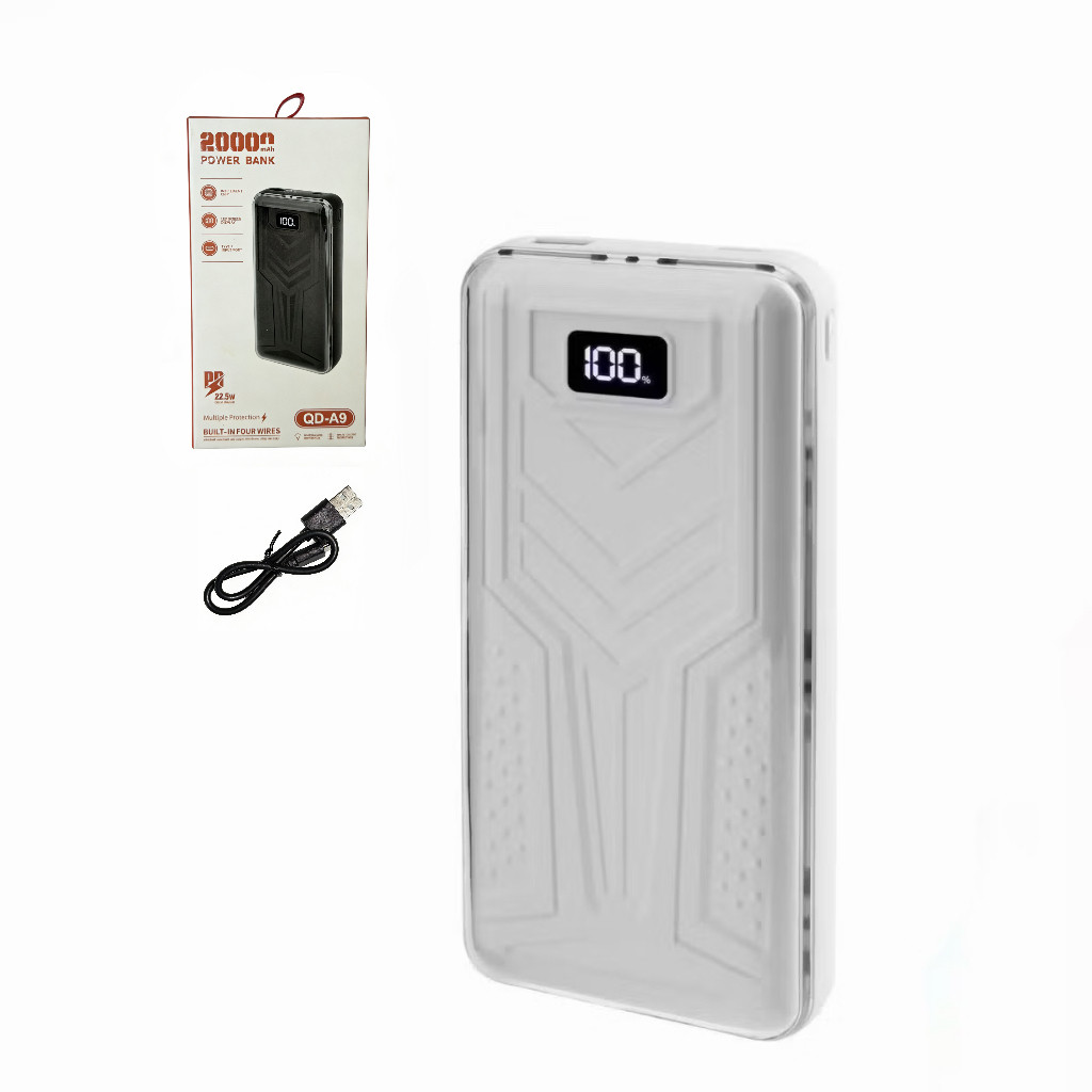 Power Bank 20000mAh 4 em 1 com Cabo Integrado Lightning Tipo C Micro USB Carga Rápida 3.1A