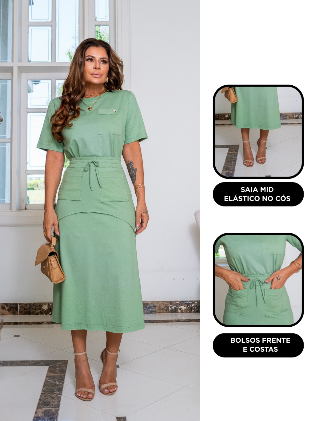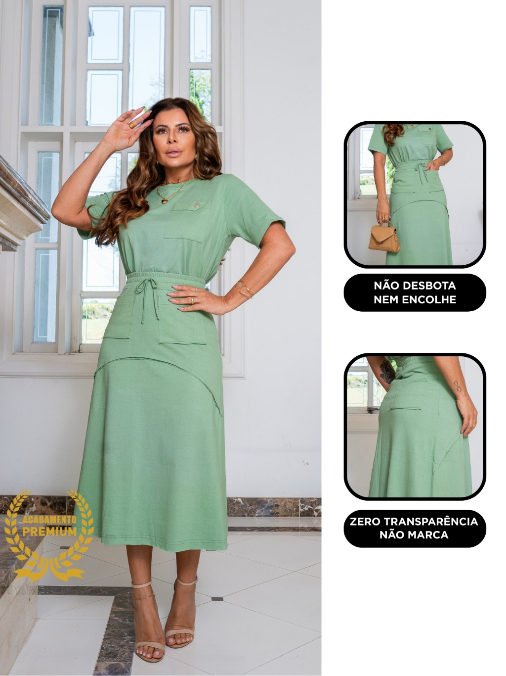Conjunto Saia 100% Algodão Com Forro Manga Curta Moda Feminina!