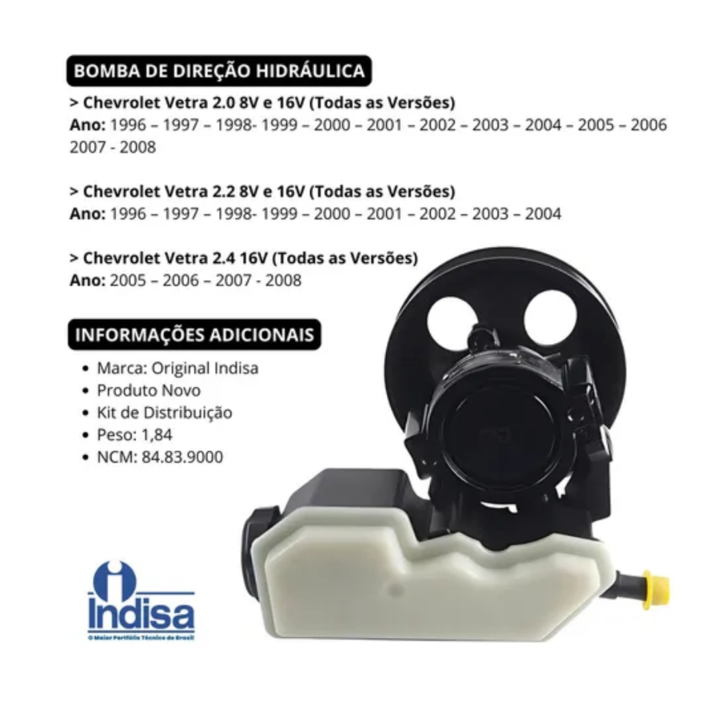 Bomba Da Direção Hidraulica Para Veículos Vectra 2.0 2.2 1996 A 1999 Produto Novo Original Indisa