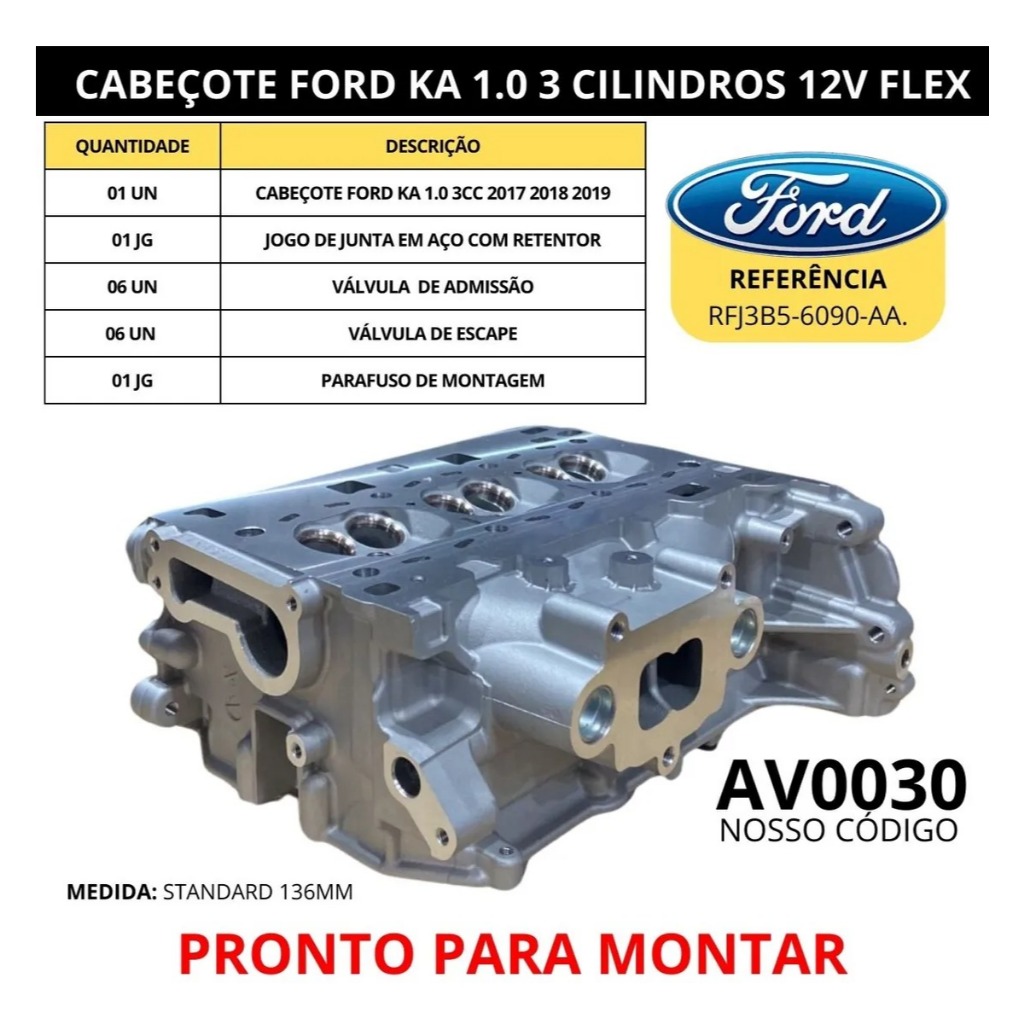 Cabeçote Com Válvulas Parafuso E Juntas P/ Ford Ka 1.0 12v 3Cc Flex 2014 Até 2021 Novo