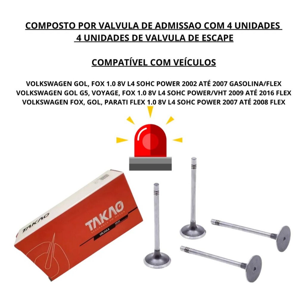 Kit Jogo Válvula Escape E Admissão Para Gol G5 Fox Voyage 1.0 8v Ea111