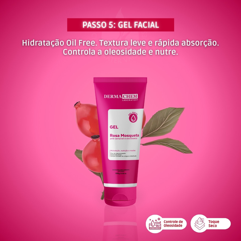 Kit Skincare Rosa Mosqueta Hidratação Limpeza Pele Dermachem