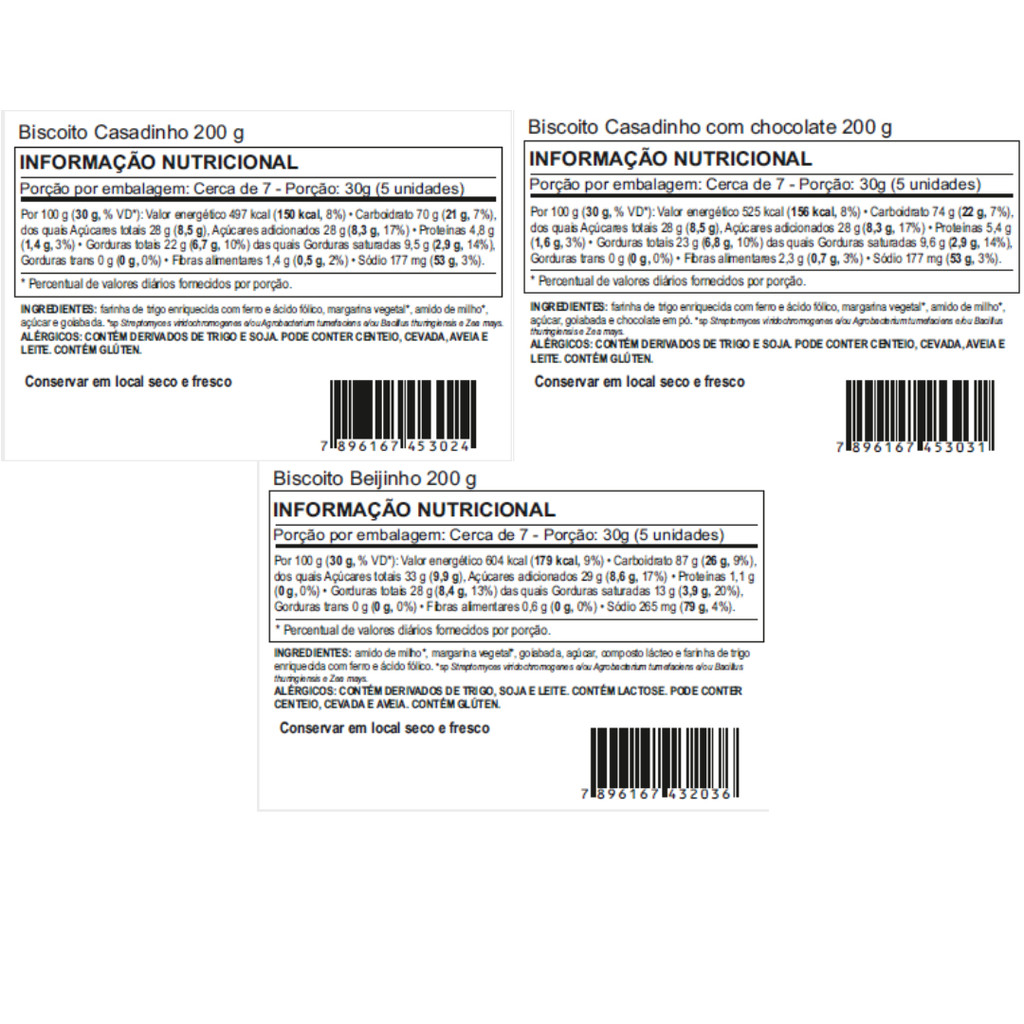 Kit 3 Biscoito Casadinho, Casadinho com Chocolate e Beijinho