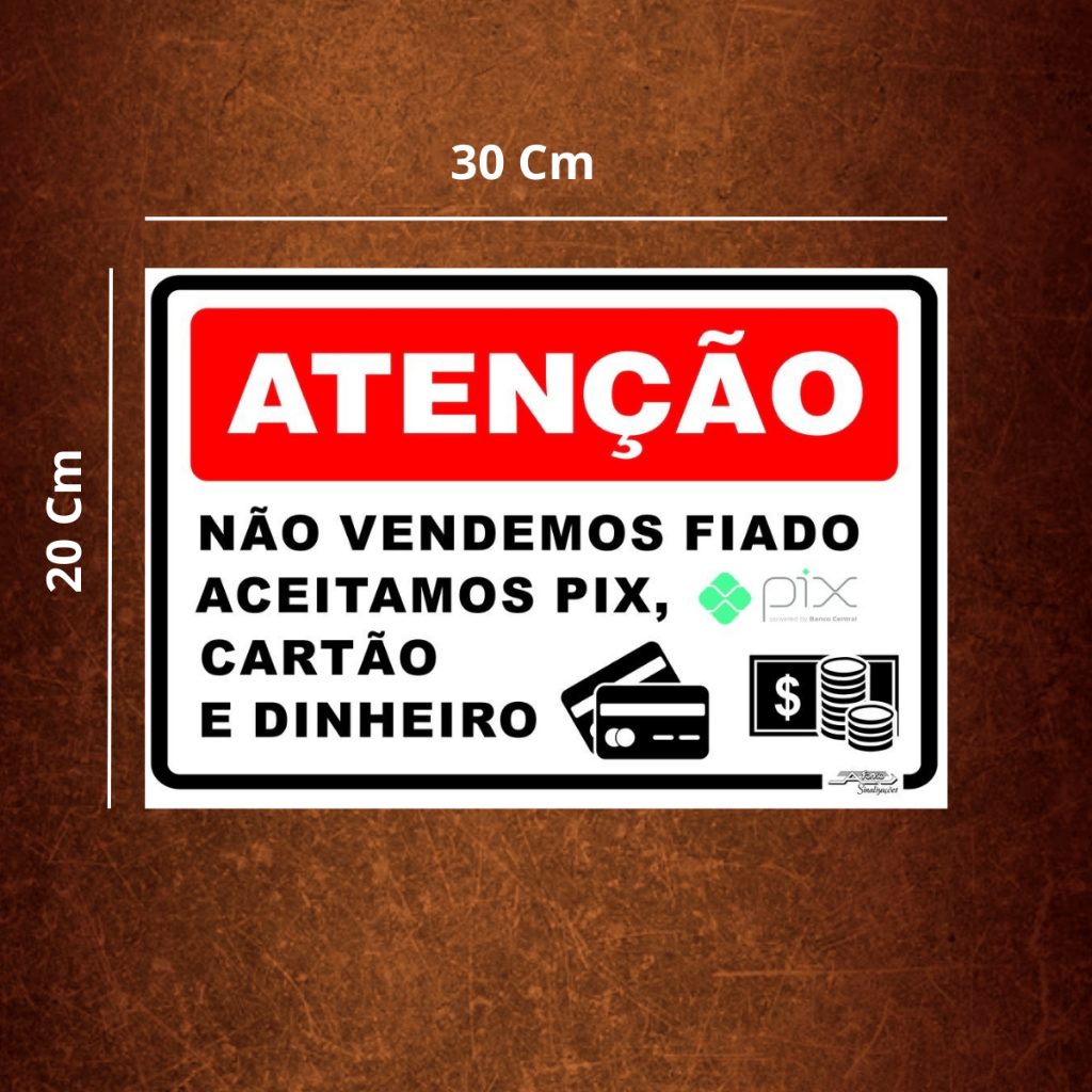 Placa Aviso Não Vendemos Fiado Pix Cartão Dinheiro 20x30