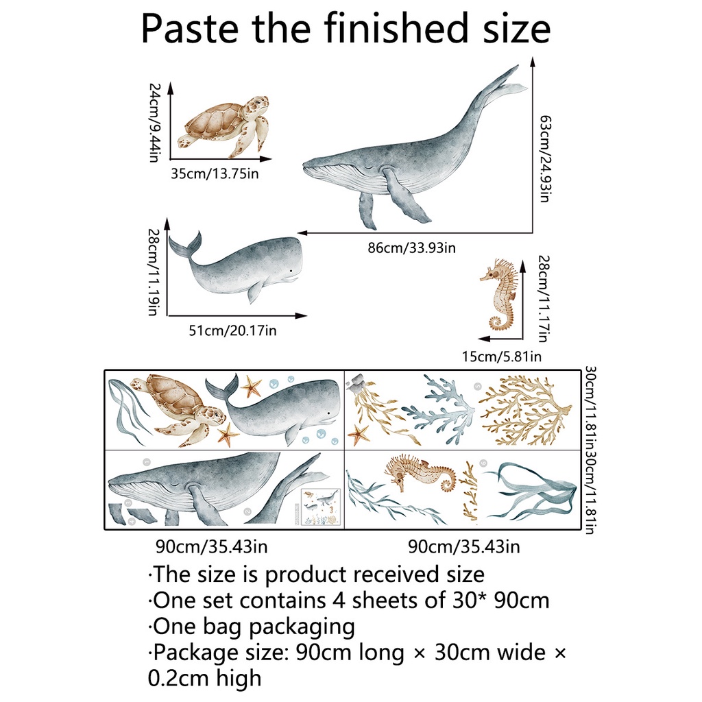 Adesivos de Parede Adesivos de Parede Grandes Adesivos de Parede Submarina Tartaruga Marinha de Baleia Animal Estilo Aquarela de Parede Inteira Adesivos de Parede do Quarto das Crianças