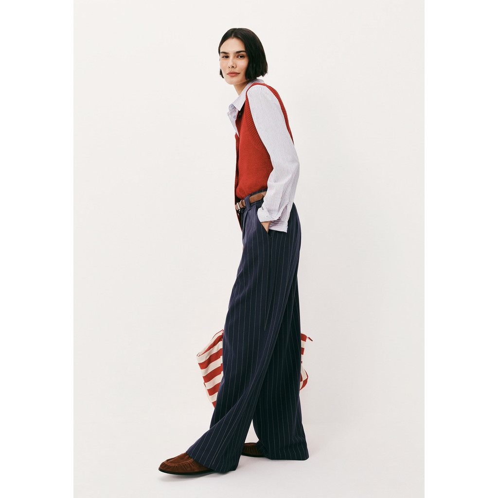 Calça Feminina Em Alfaiataria Risca De Giz