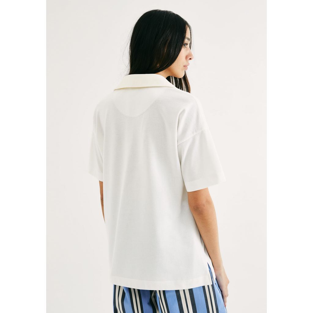 Camisa Polo Feminina Oversized Em Malha Binada