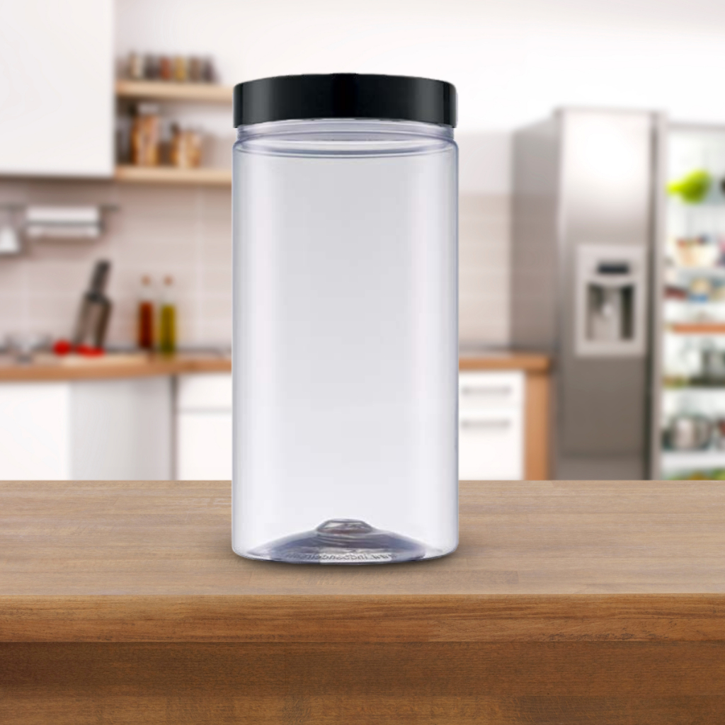 Kit 4 Potes 2000ml Reto Transparente Básicos Minimalista Tampa Preta de Rosca Cozinha Mantimento achadinhos