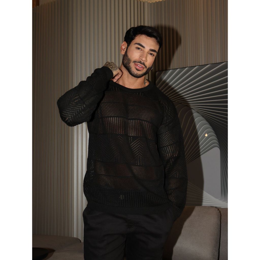 Sueter Masculino blusa detalhes de outono inverno alta qualidade chic