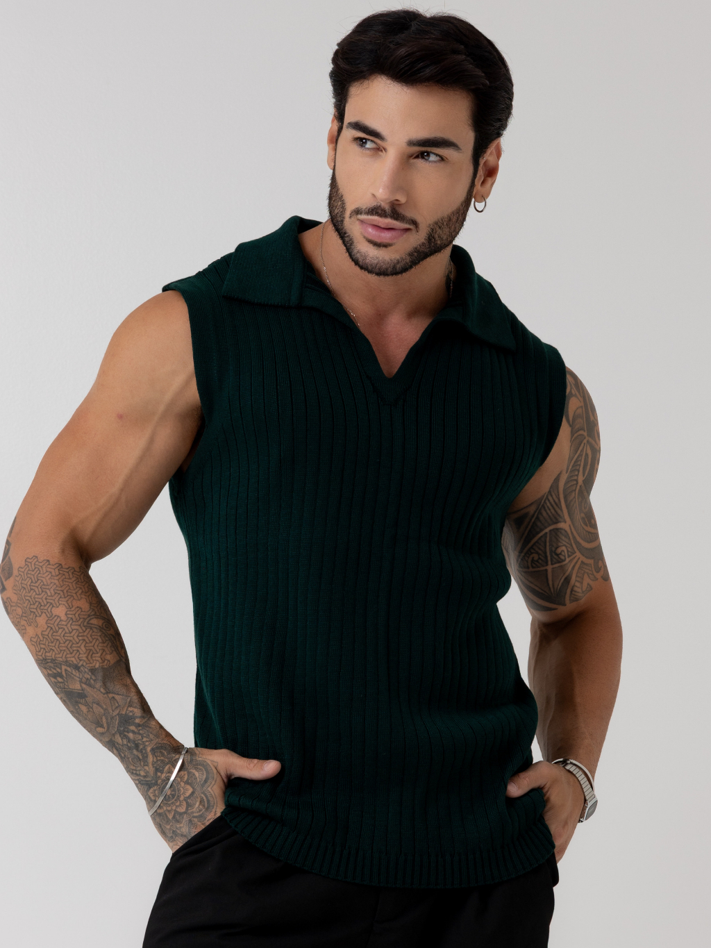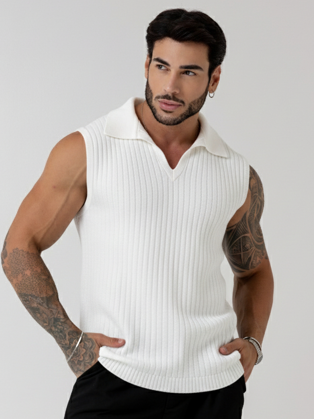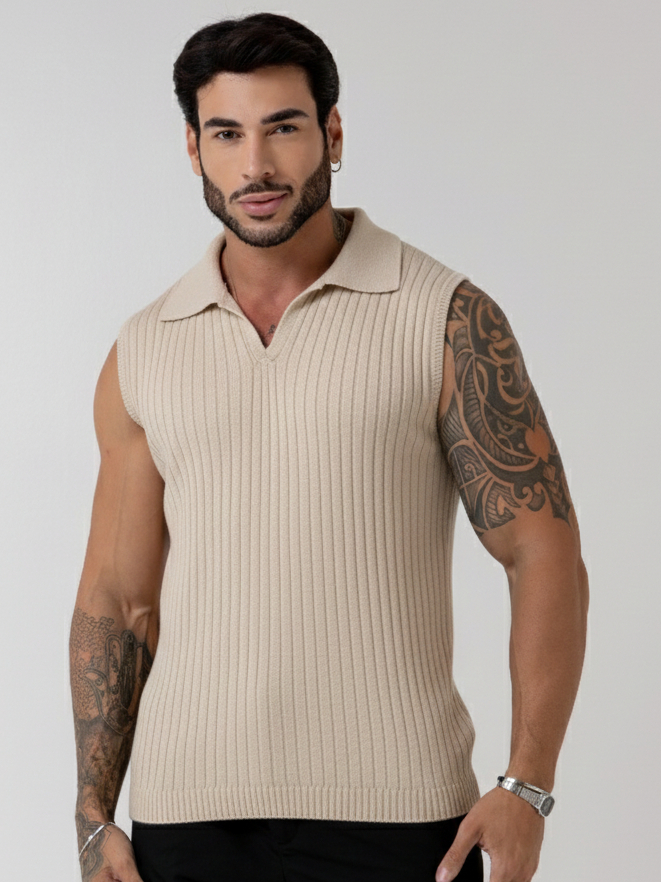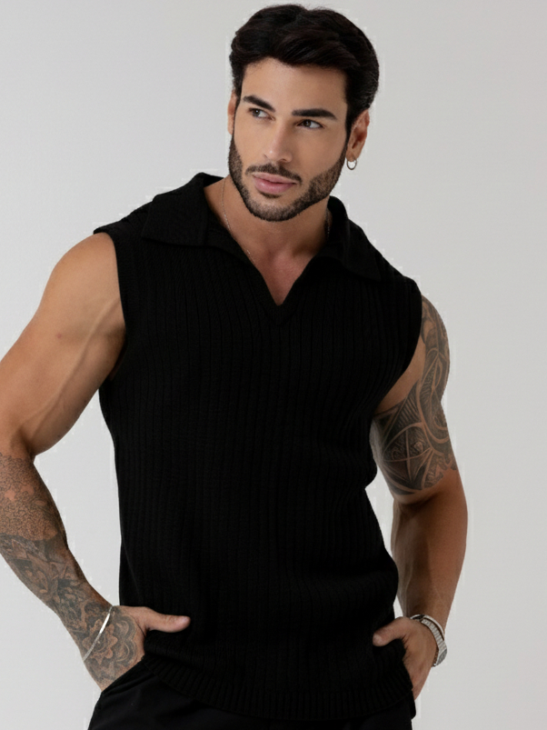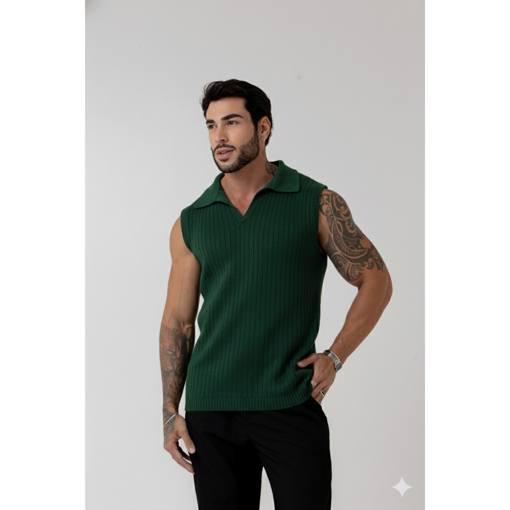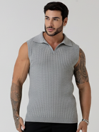 regata masculina sem manga gola polo tricot blusa verão primavera homens casual