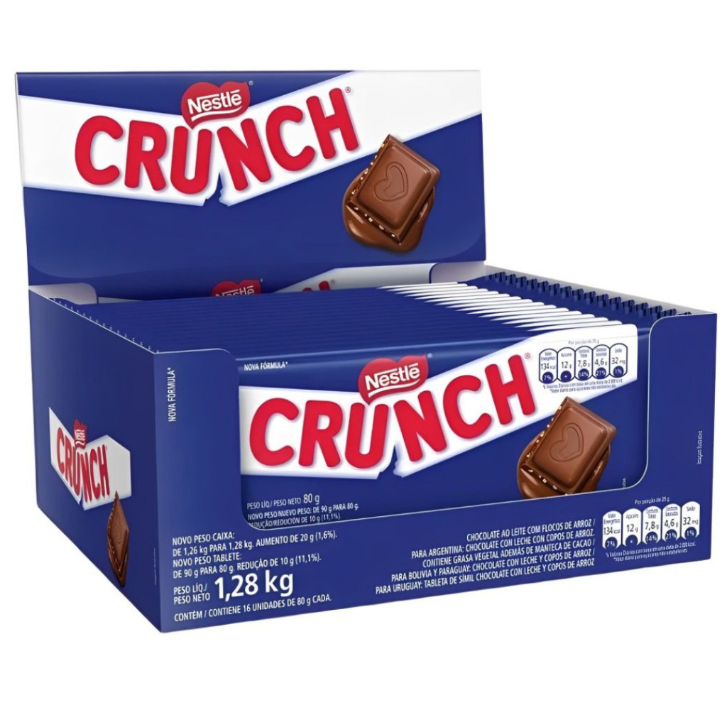 Barras Chocolate Crunch 80g Crocante e Delicioso Display 16 Nestlé - Páscoa/ Lembranças/ Brinde/ Aniversário/ Promoção