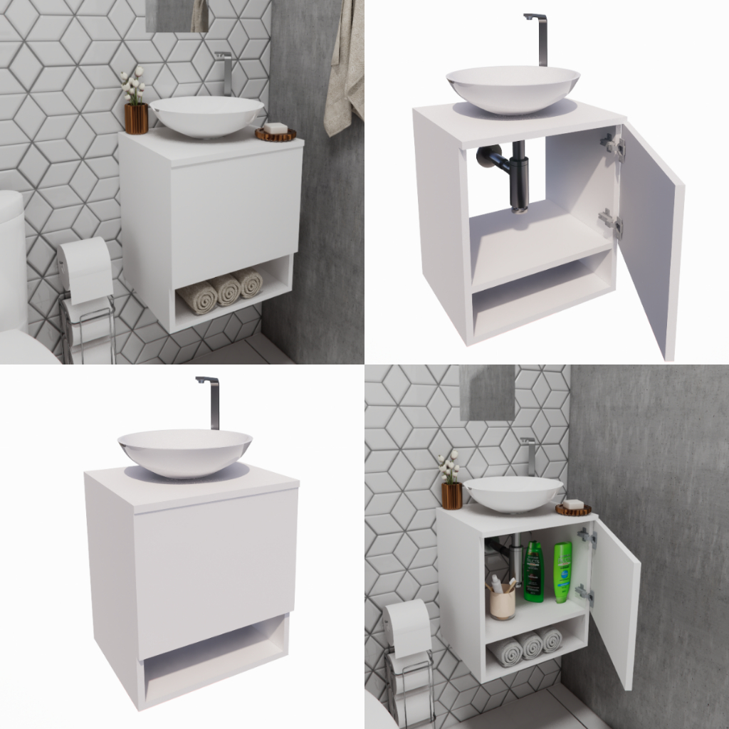 Conjunto Gabinete Banheiro Armario Suspenso Completo Branco Cuba Espelho Torneira Cromada Acessorios