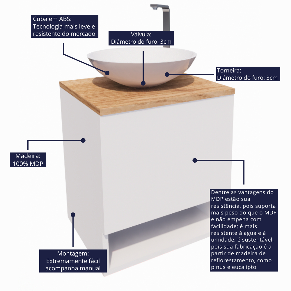 Gabinete de Banheiro 40cm com Cuba e Espelho Completo Lavabo Armário Suspenso