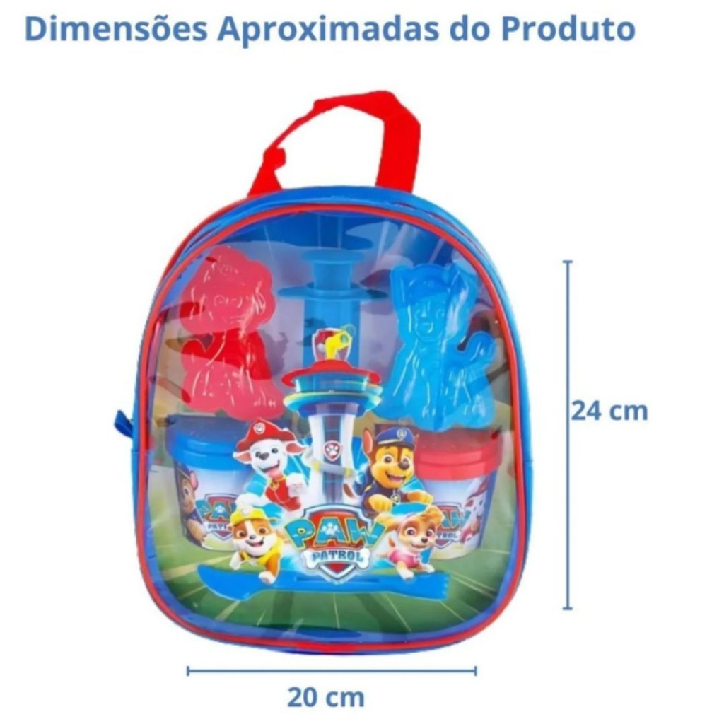 Mochila Patrulha Canina com 3 Potes de Massinha Sunny