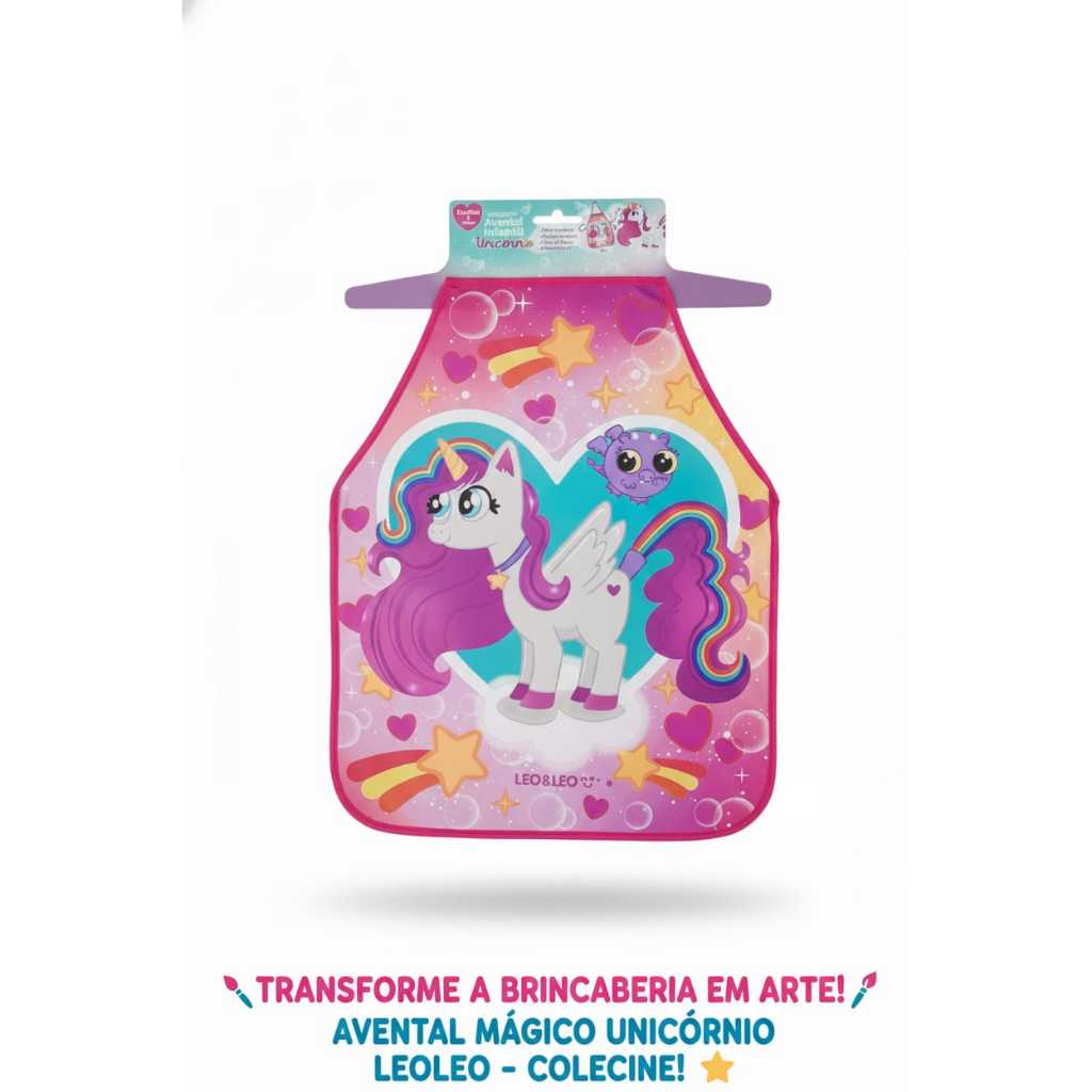 Avental Infantil Unicórnio com alça regulavél e Impermeável Leo & Leo