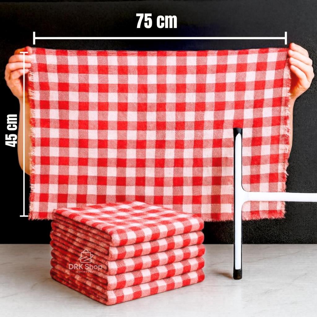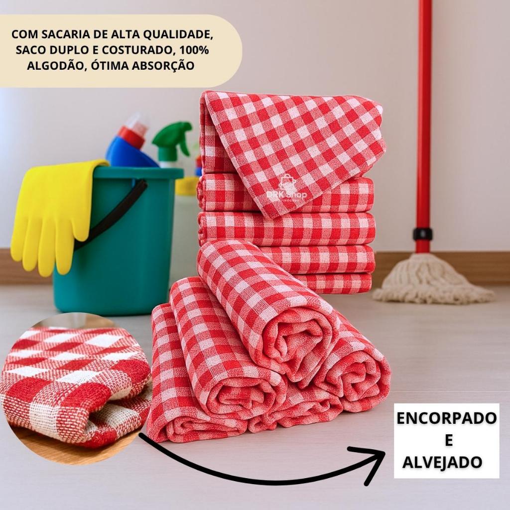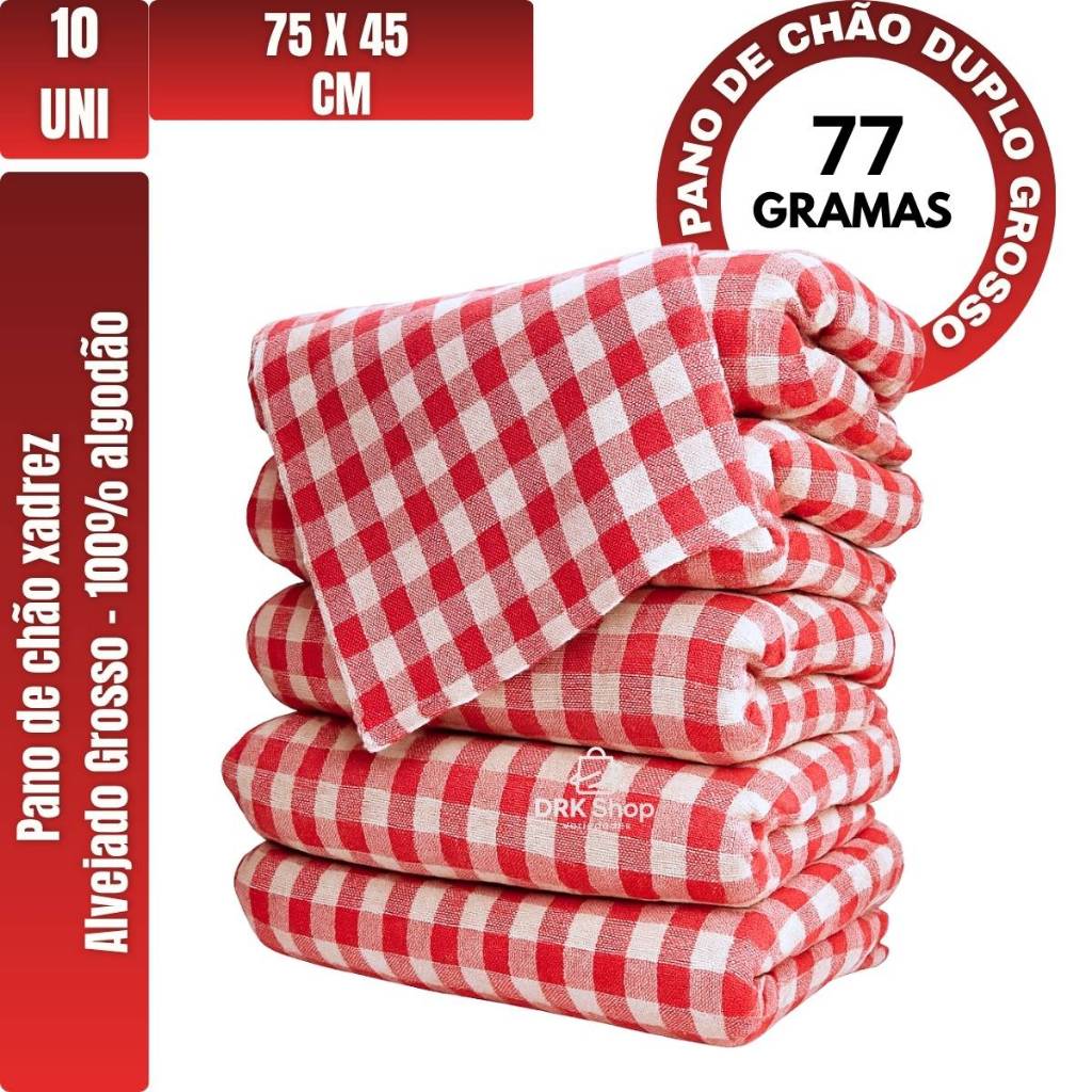 Kit Pano de Chão Xadrez Vermelho 75x45cm 100% Algodão Saco Duplo Costurado Limpeza Geral