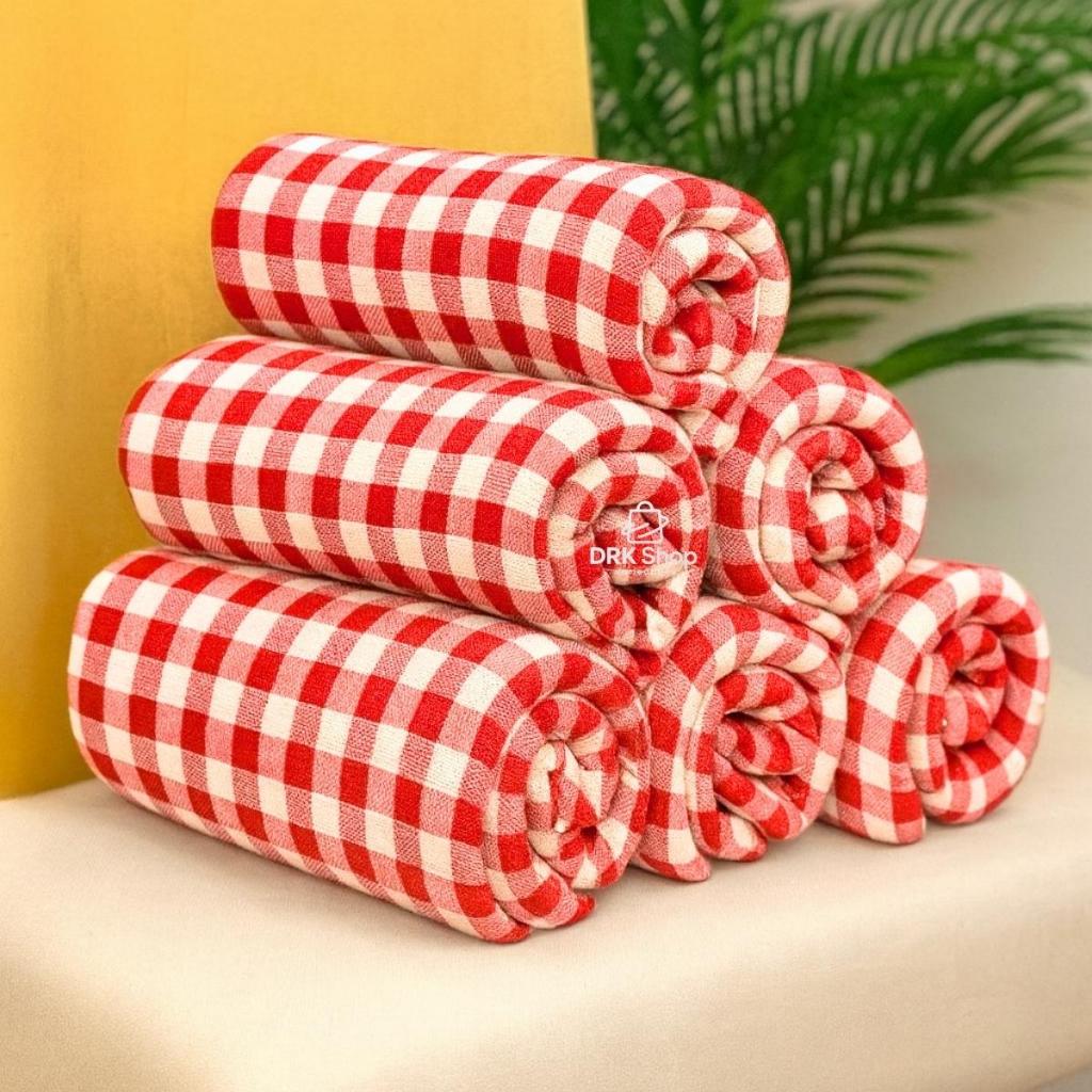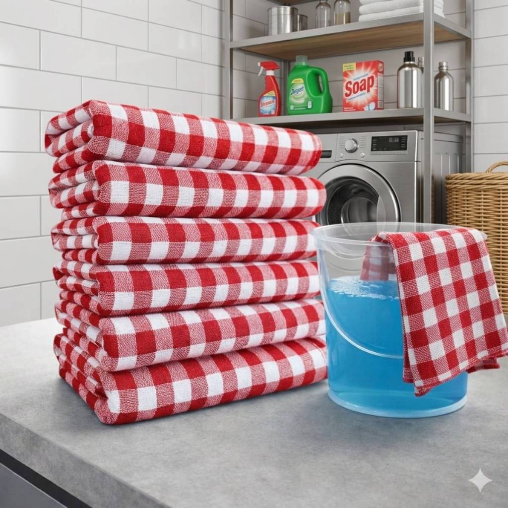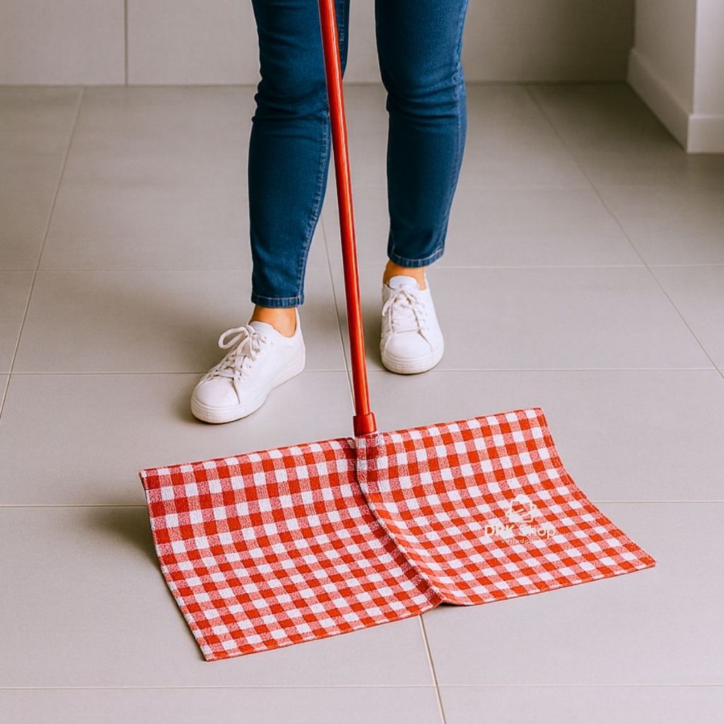 Kit Pano de Chão Xadrez Vermelho 75x45cm 100% Algodão Saco Duplo Costurado Limpeza Geral