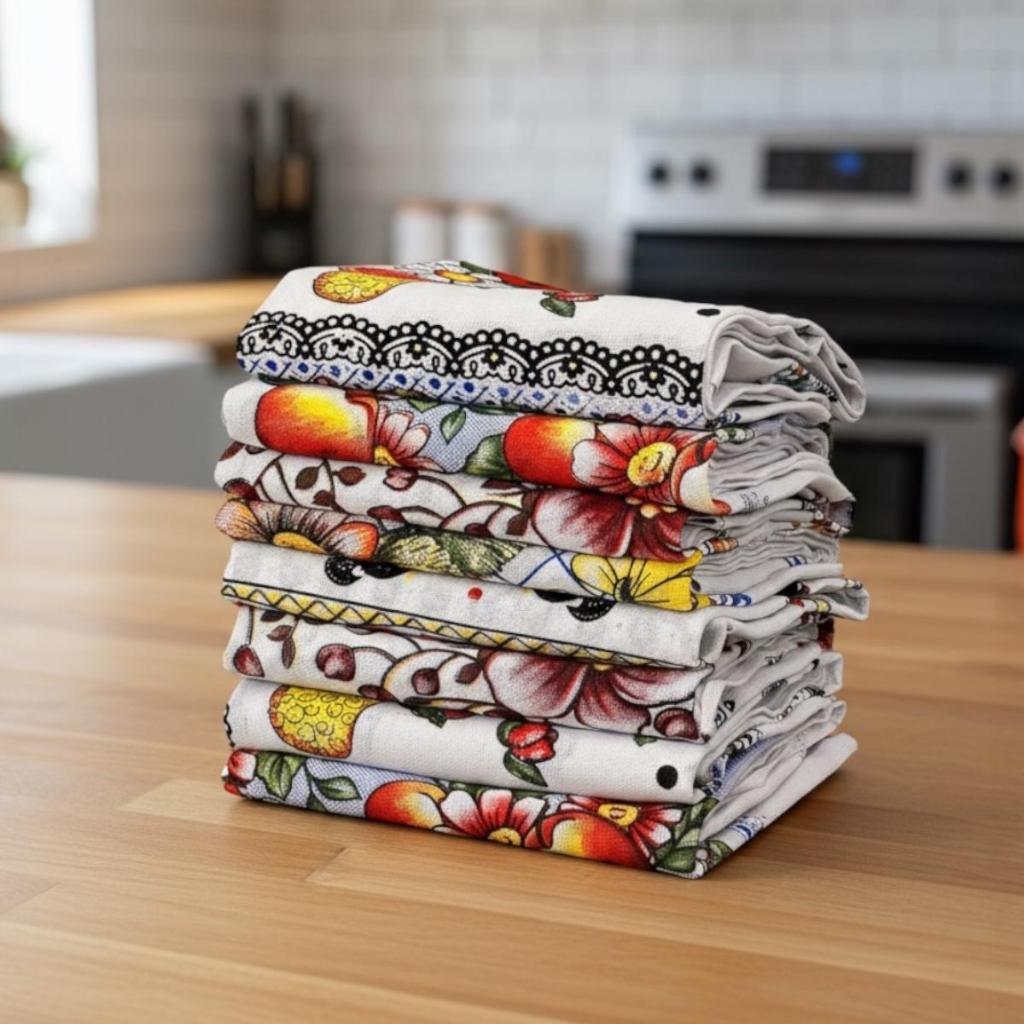 Kit C/ 10 Toalha De Chá Estampas Sortidas Cores Vivas 100% Algodão Pano de Prato Extra Grande